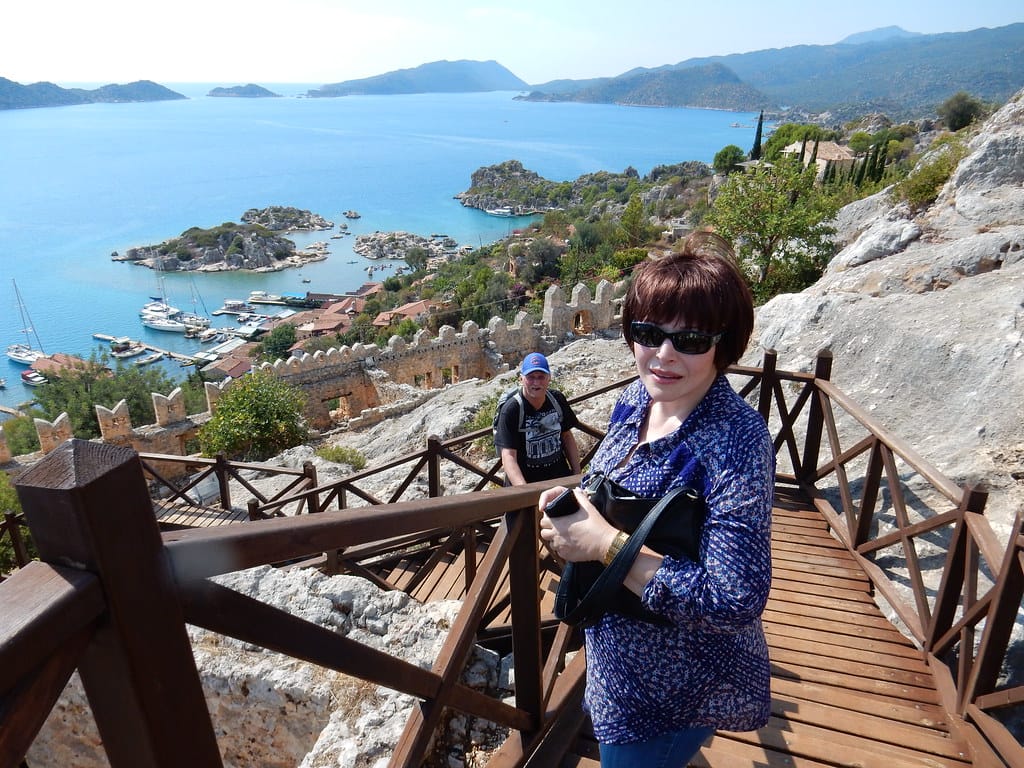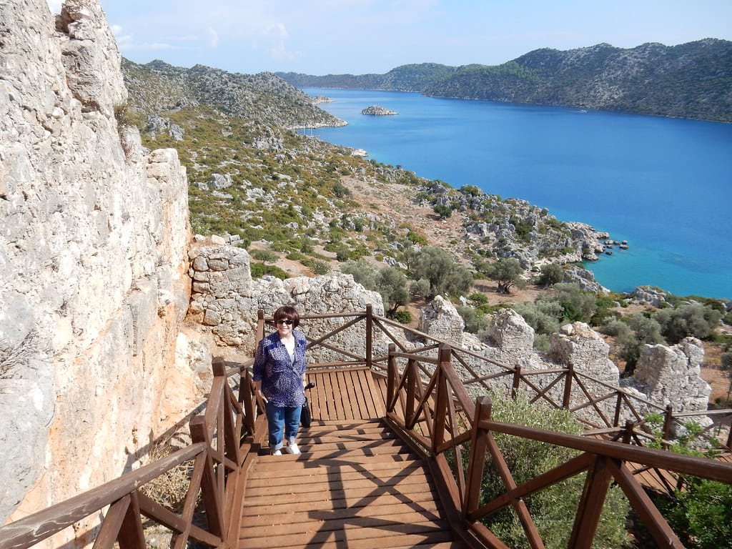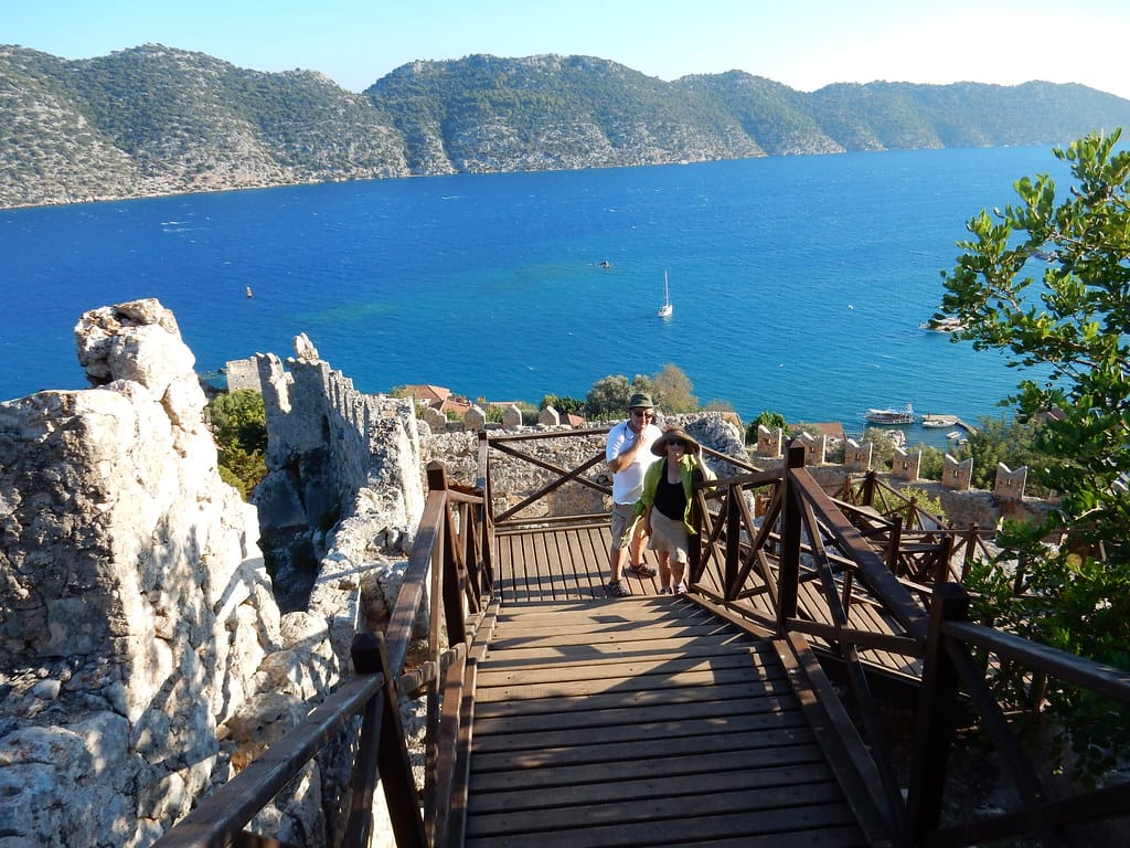 Climbing to the fortress at Kaleköy, Kekova Turkey