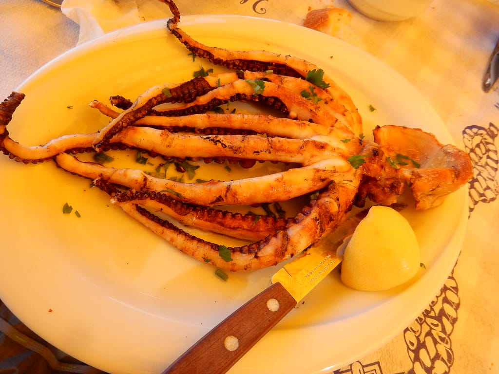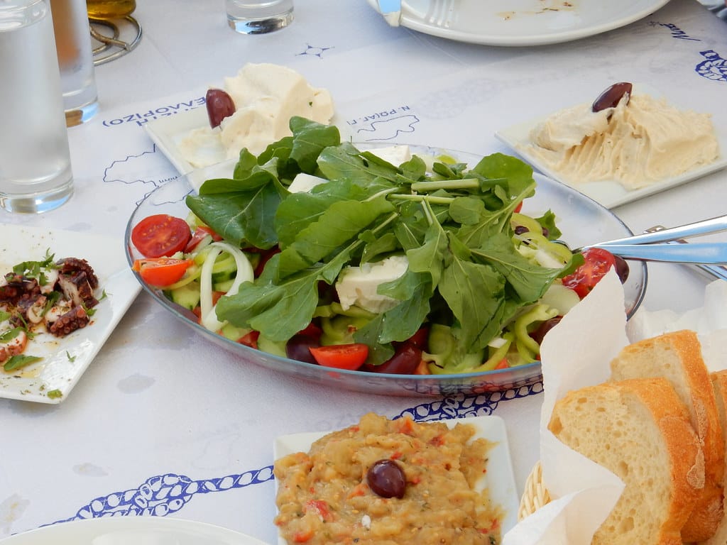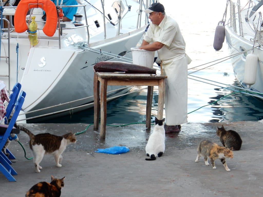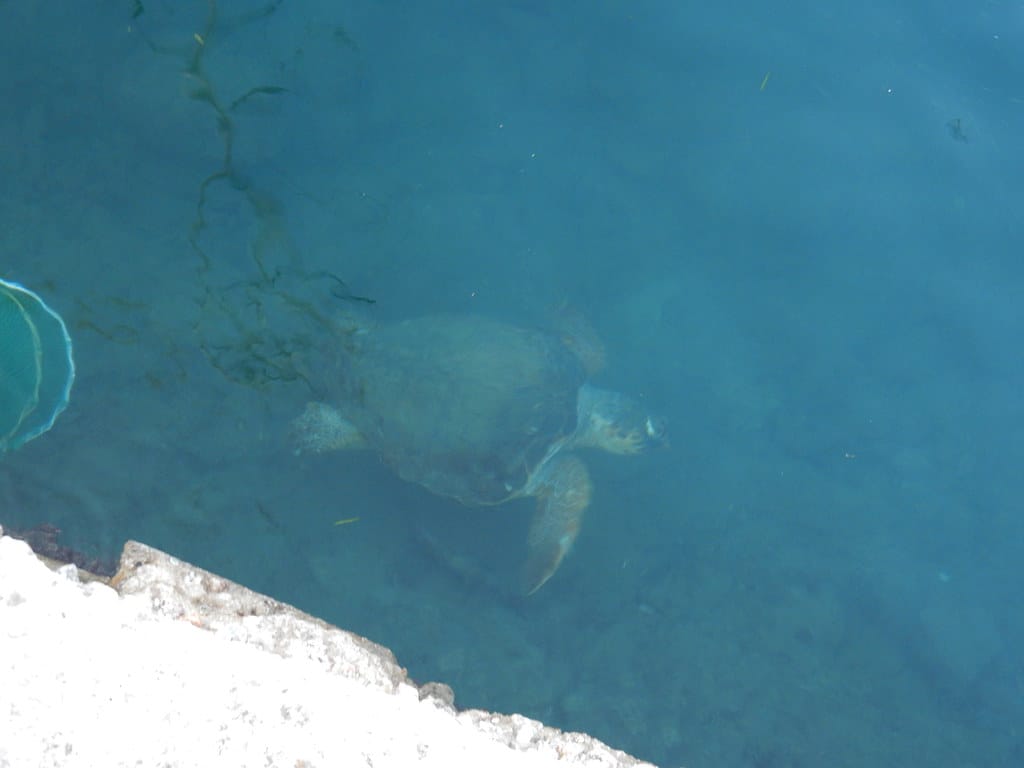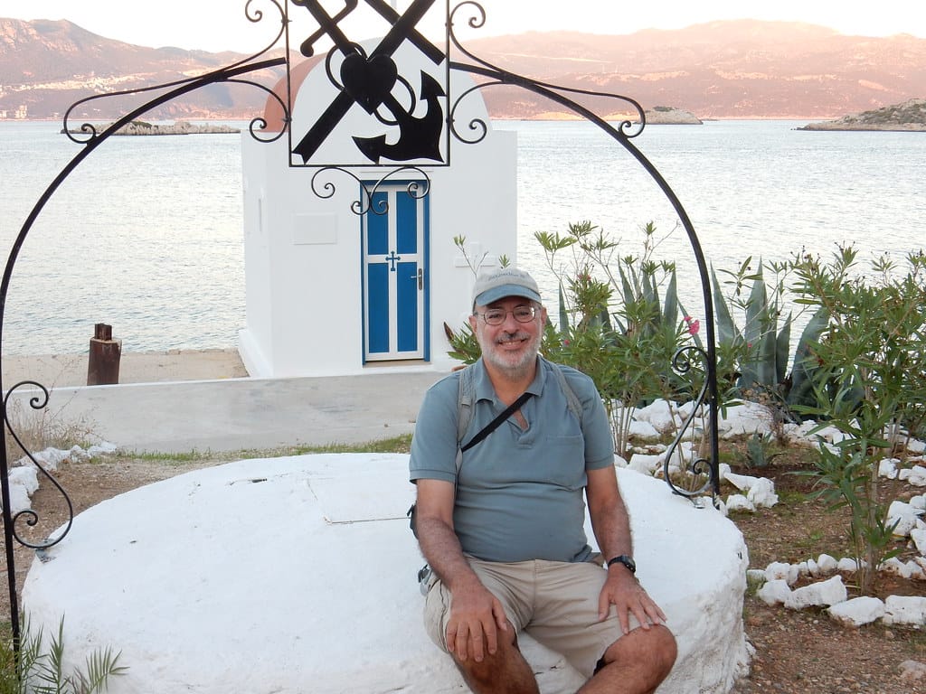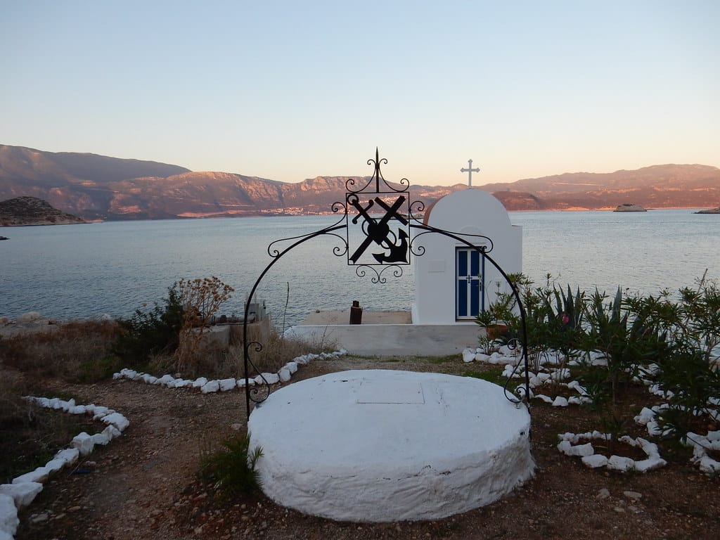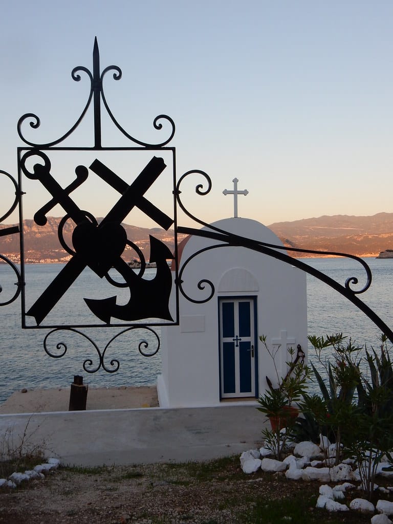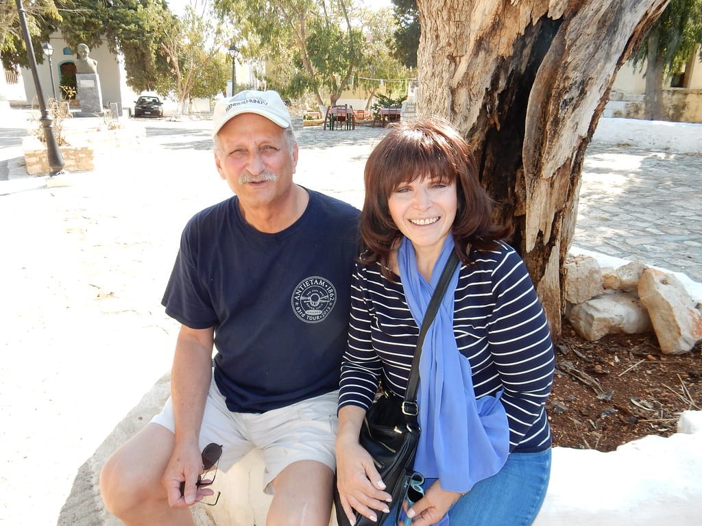 Our favorite spot…. the table over the water at the little restaurant at Aperlai. We always get it… and seem to be the only customers.