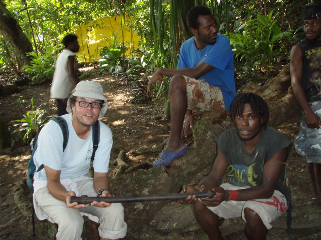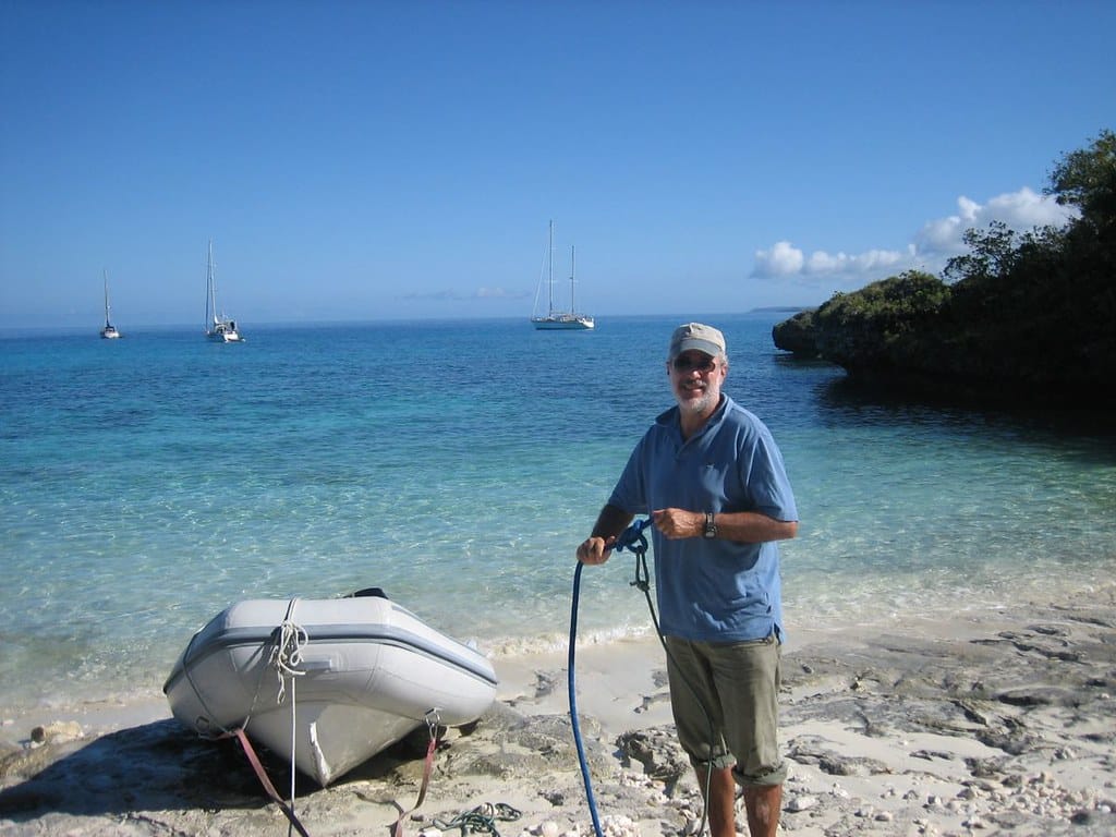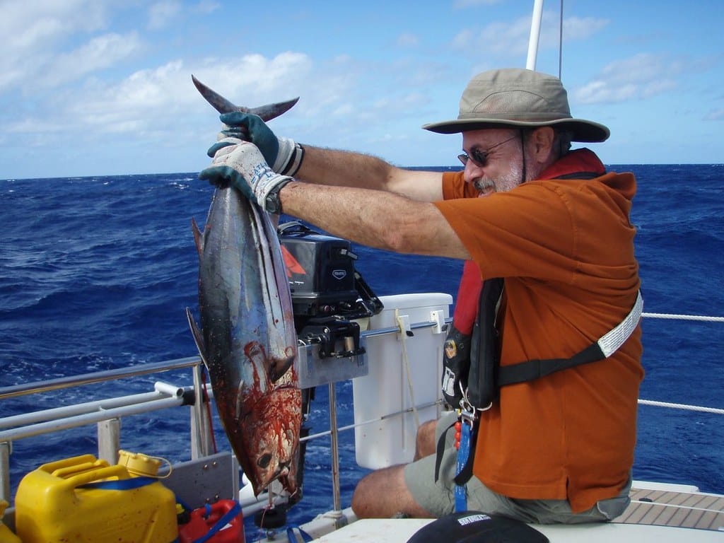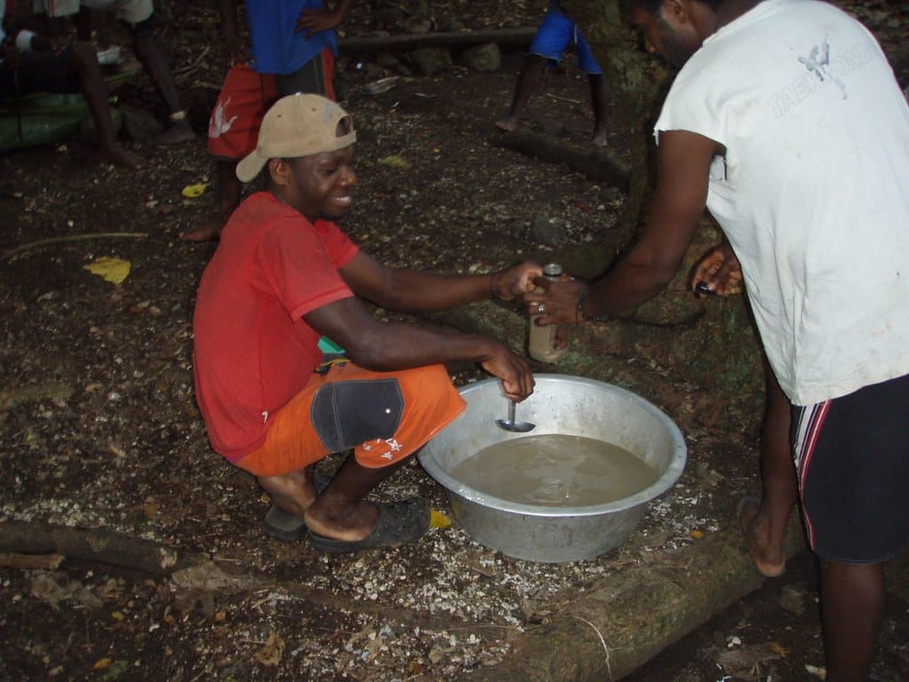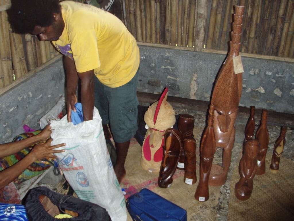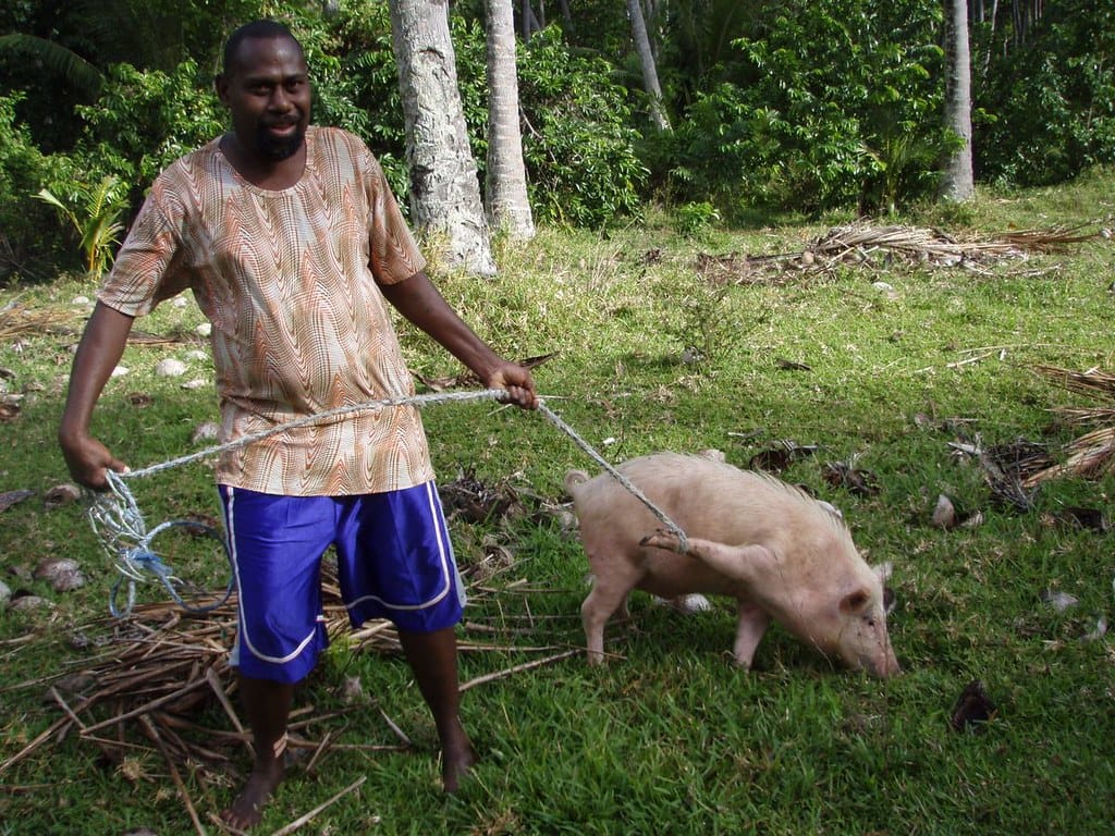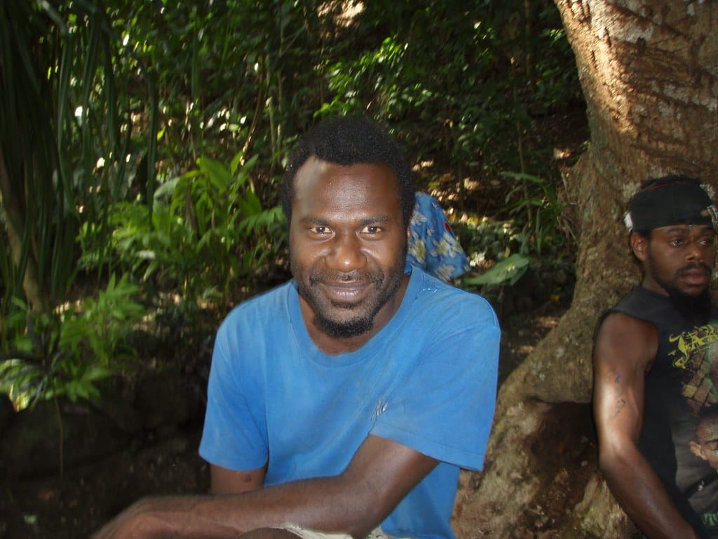 George cuts off a lobster tail for us – 500 vatu each (about $5.50)