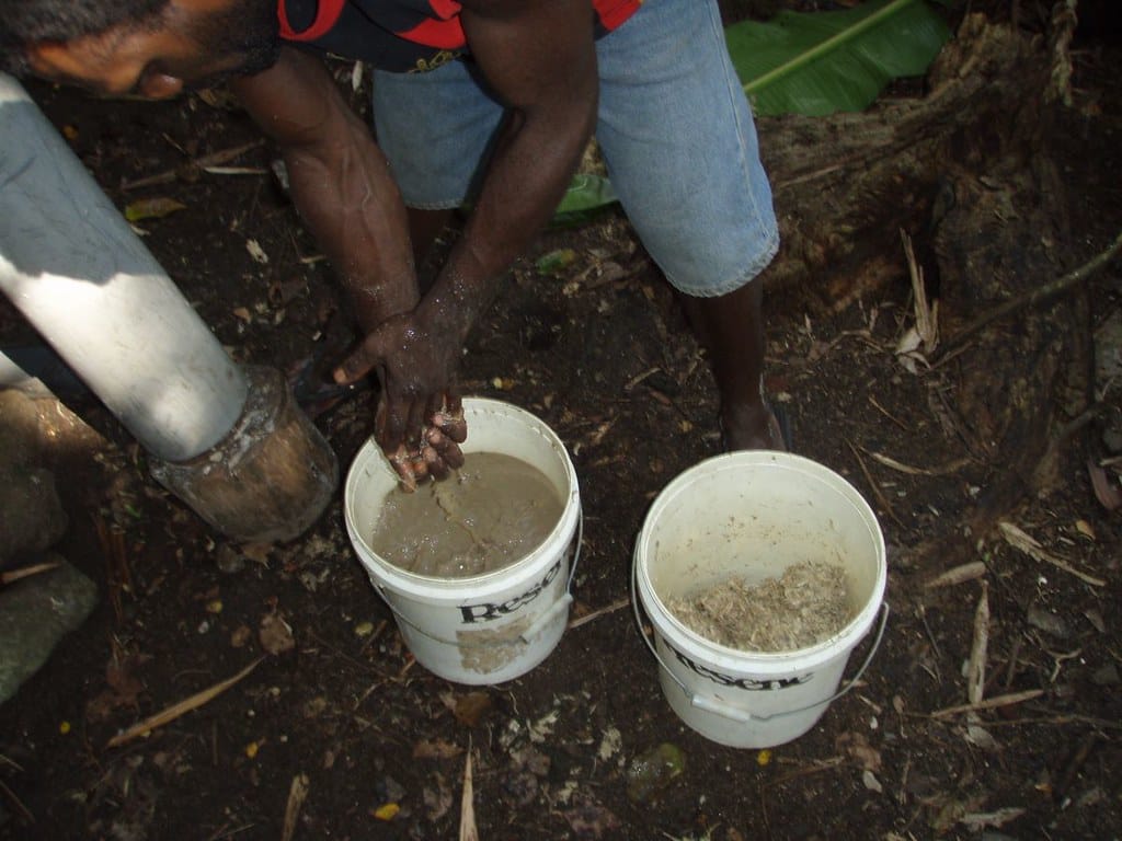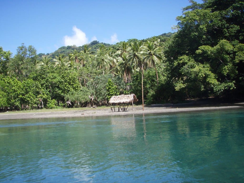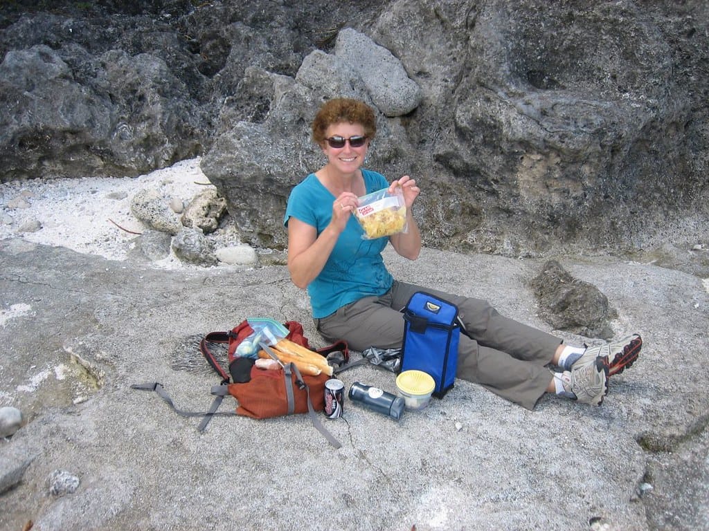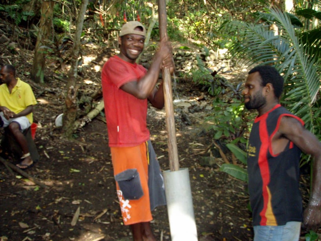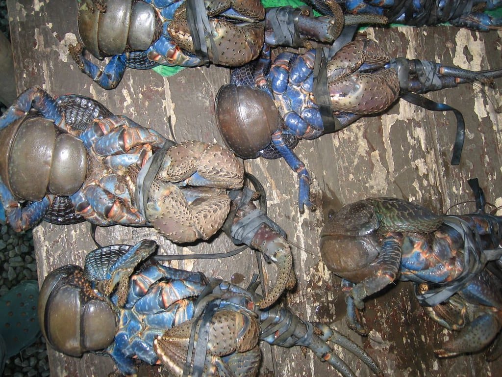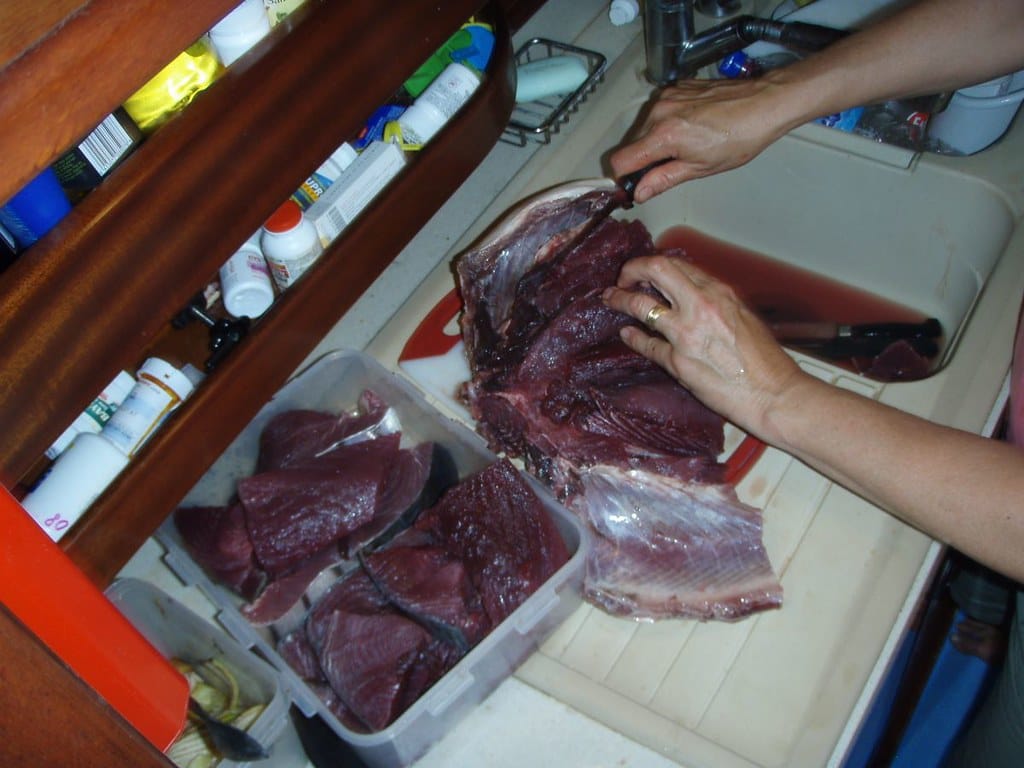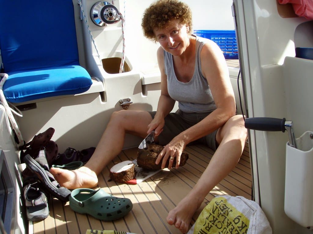 George cuts off a lobster tail for us – 500 vatu each (about $5.50)