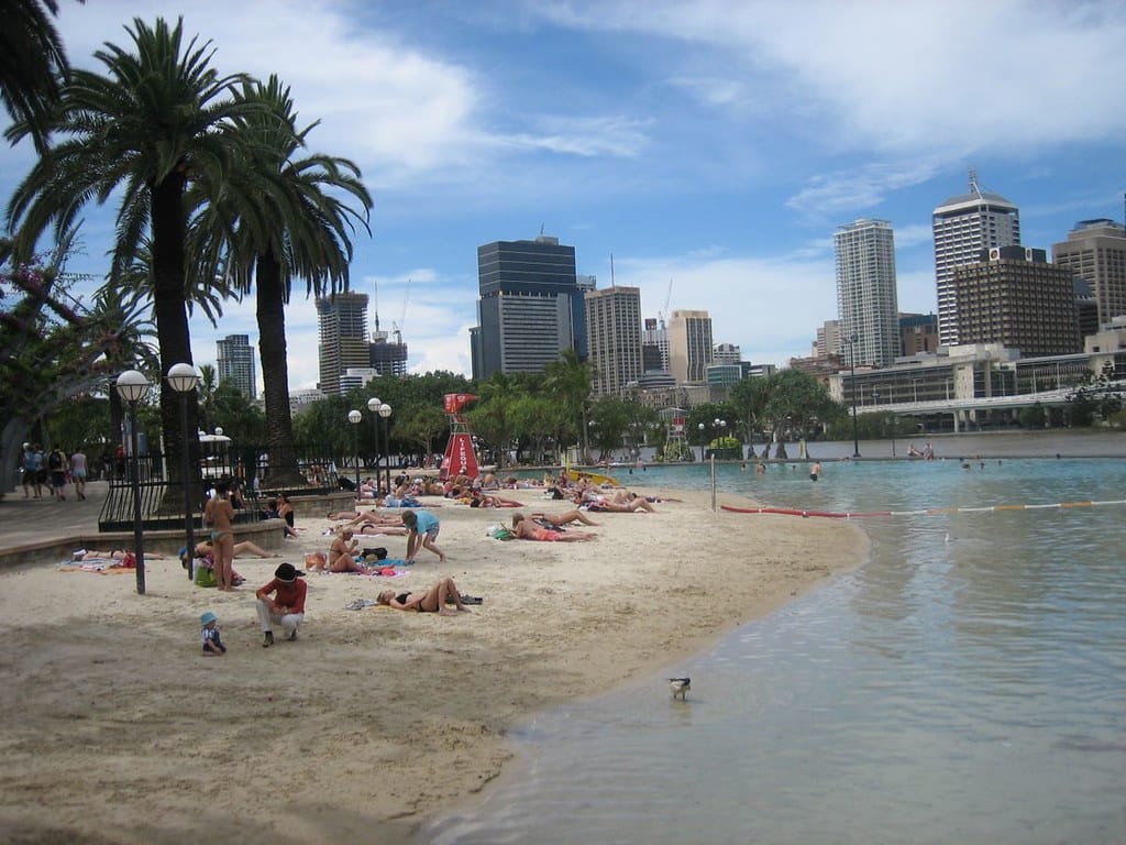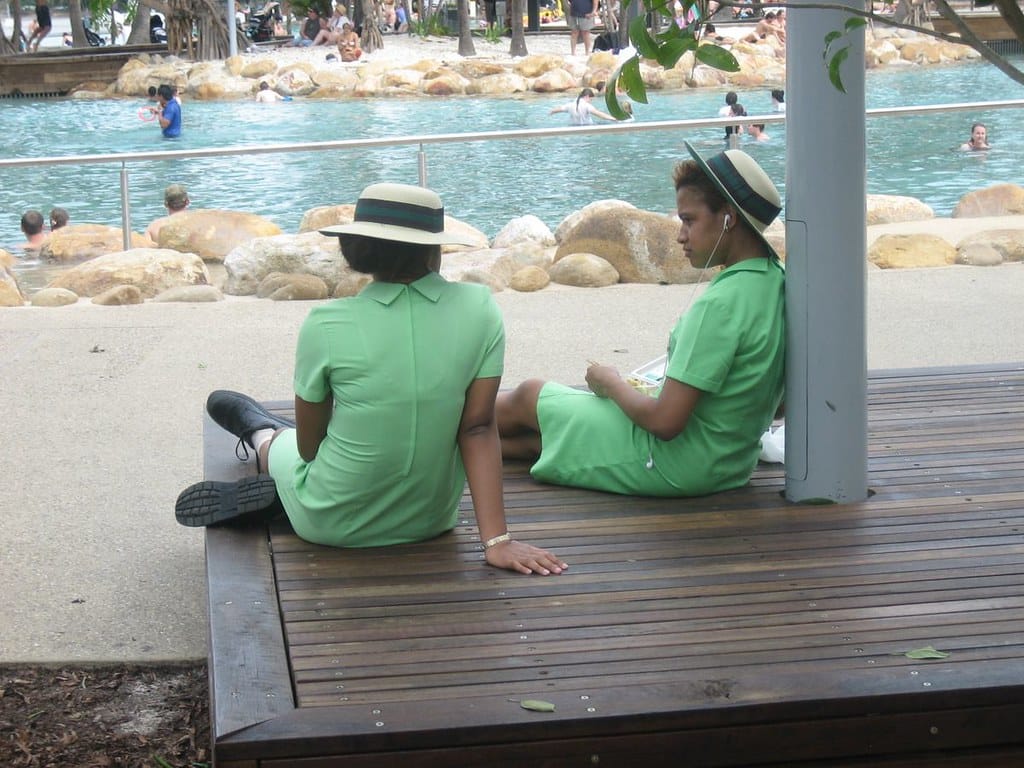 Two schoolgirls at the artificial beach in “Parklands”, Brisbane