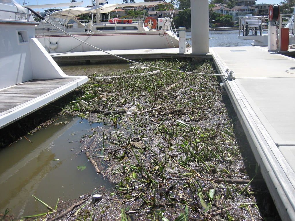 Flotsam and jetsam gather at the docks after a series of huge storms