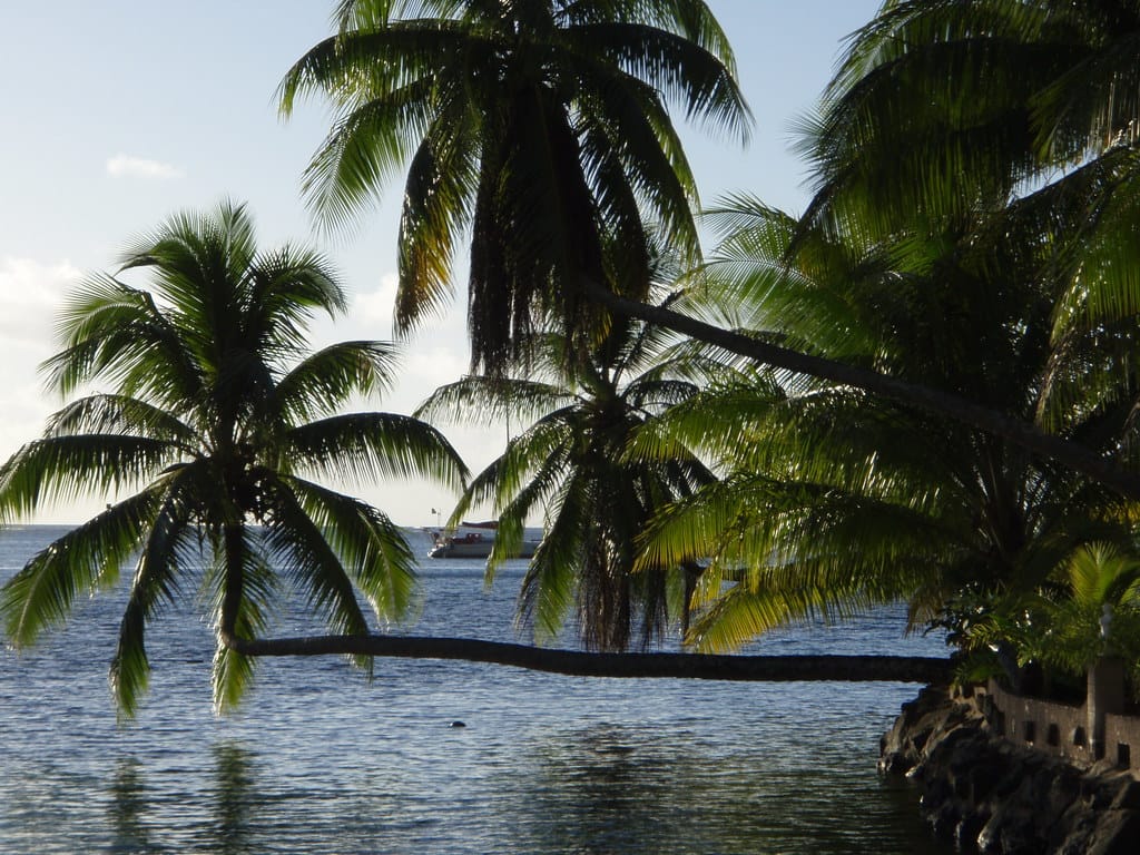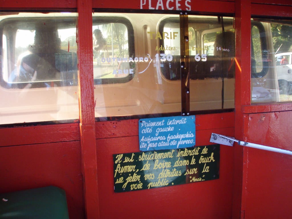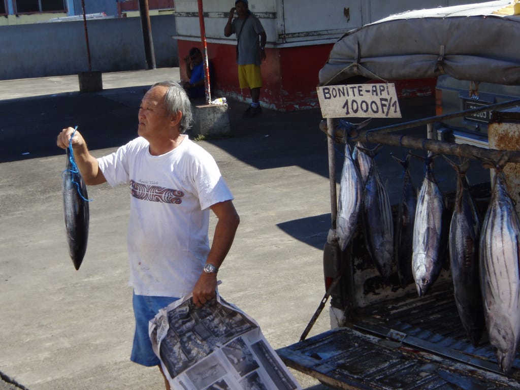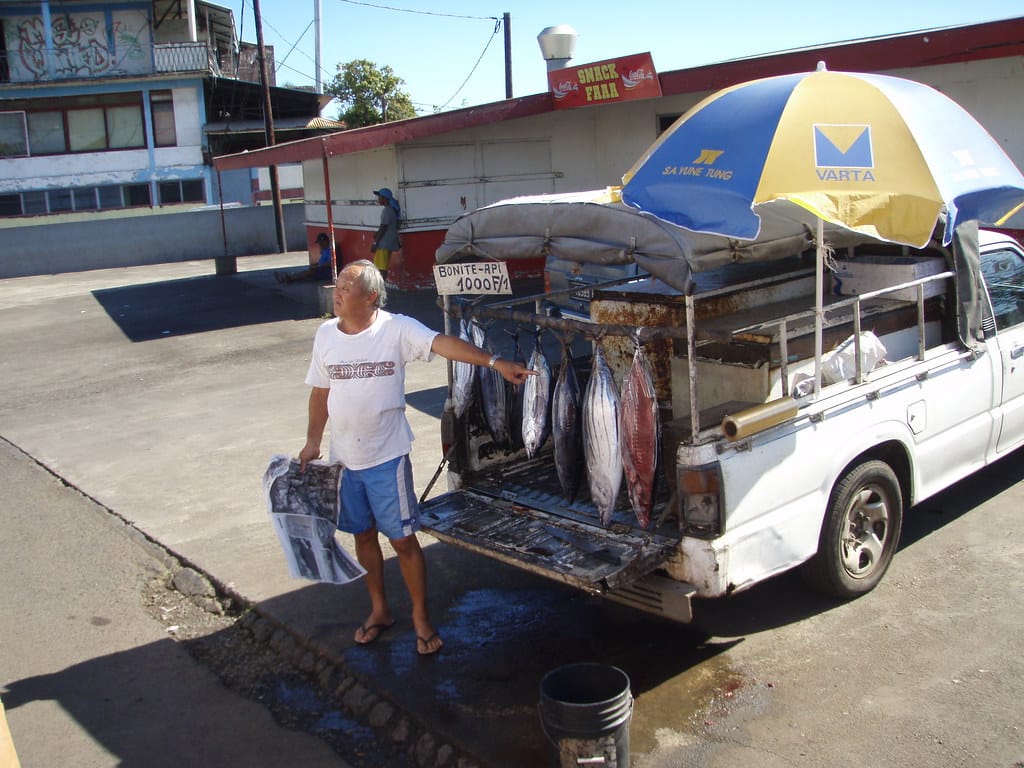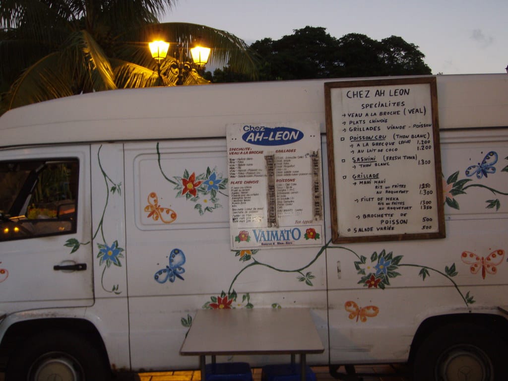 One of the many trucks that serve relatively inexpensive and good food. We didn’t try the poisson cru here, but in Huahine it was amazing.