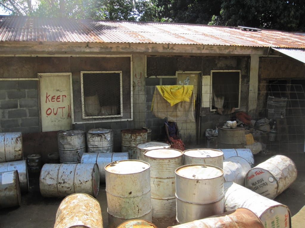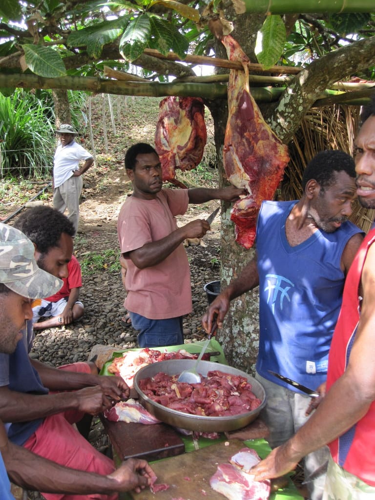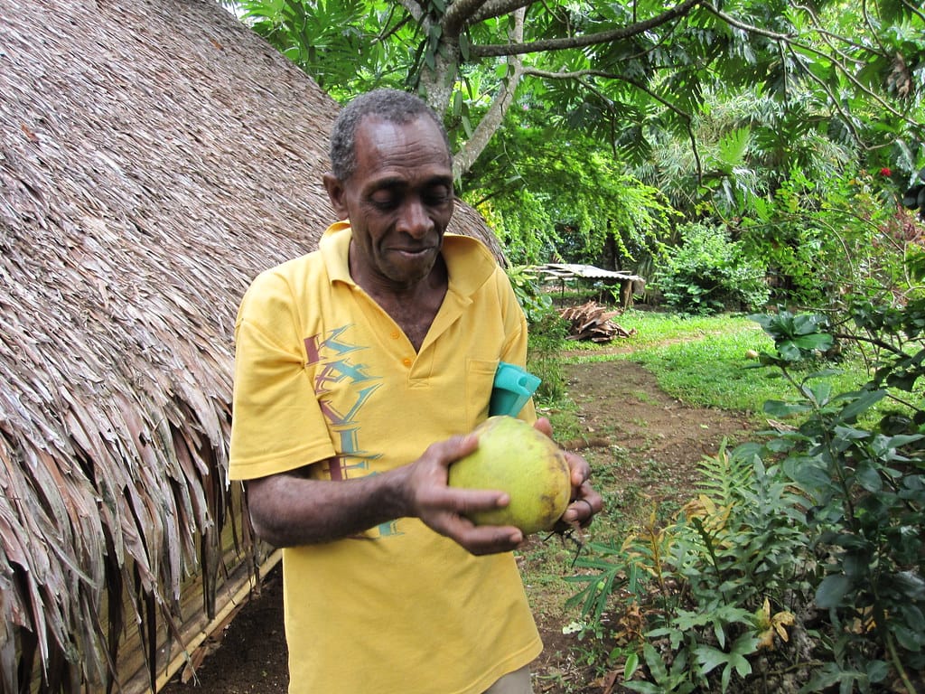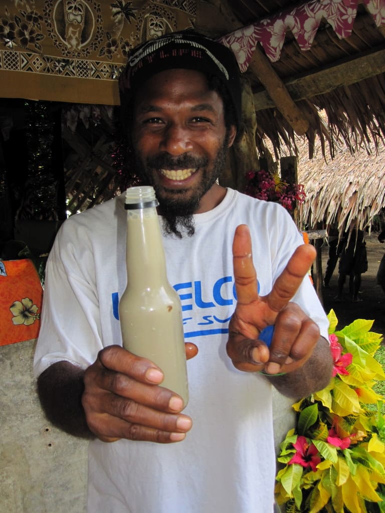 Kelly (Kelvin) buys a bottle of kava at the agricultural fair at Kerembei village
