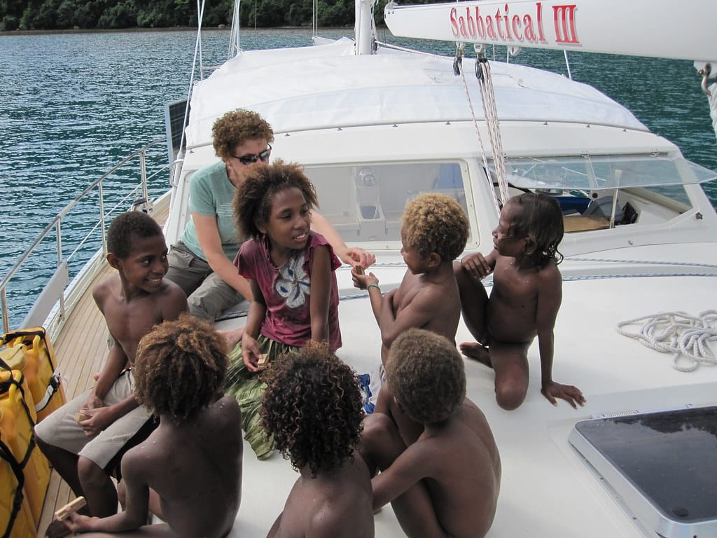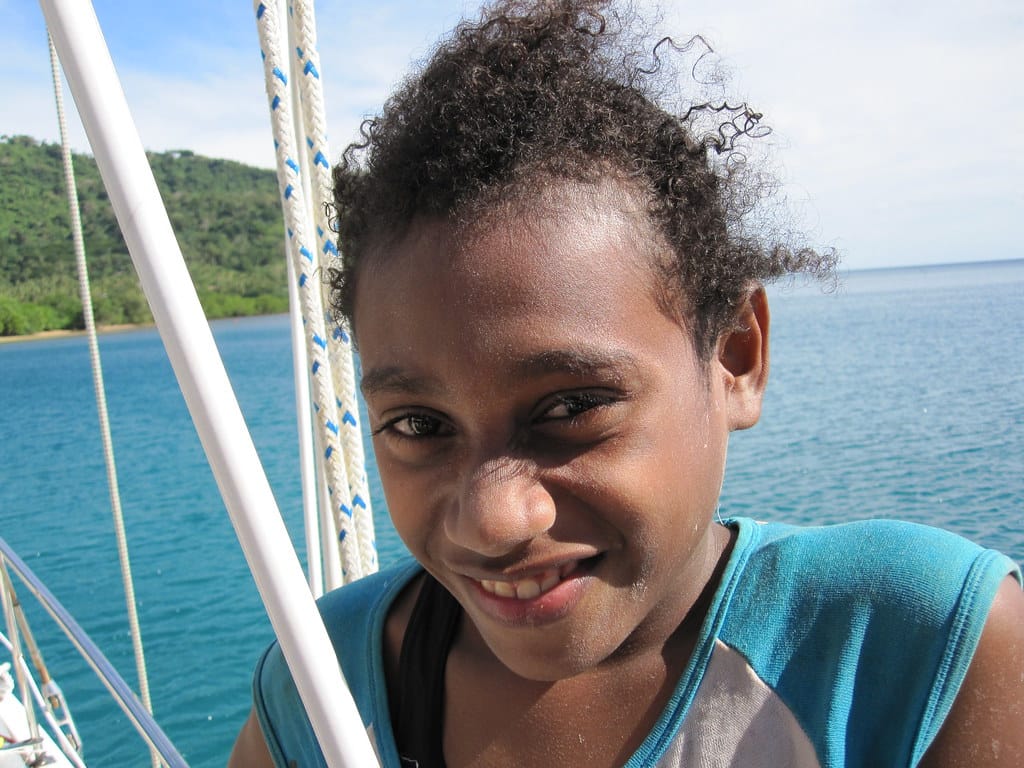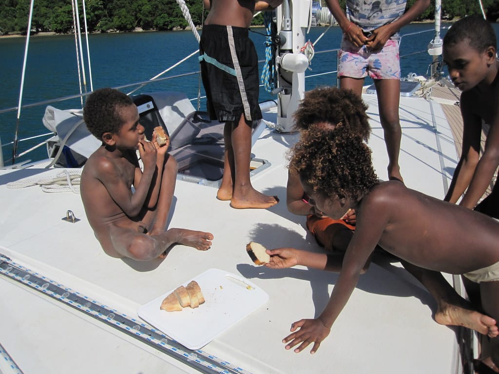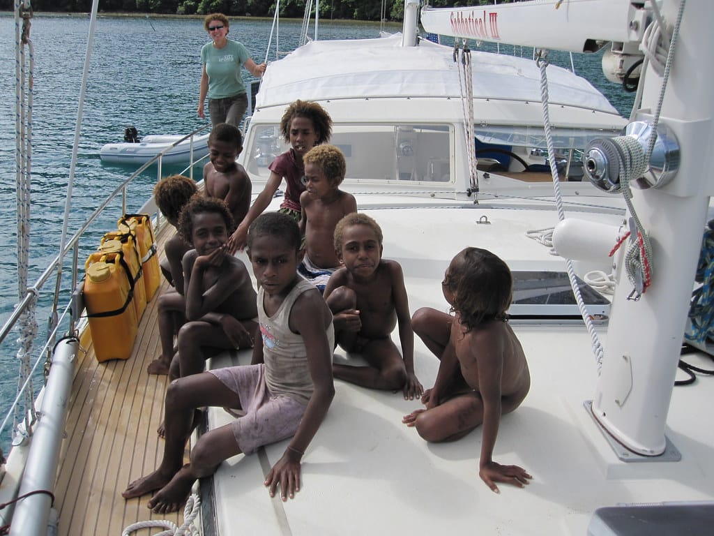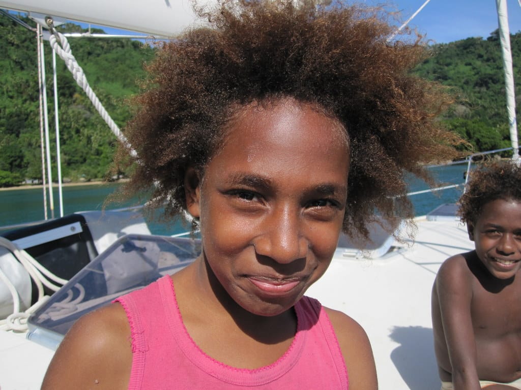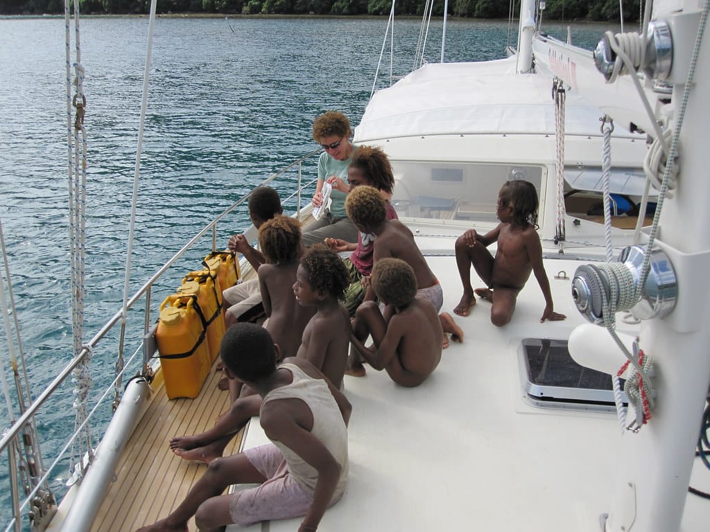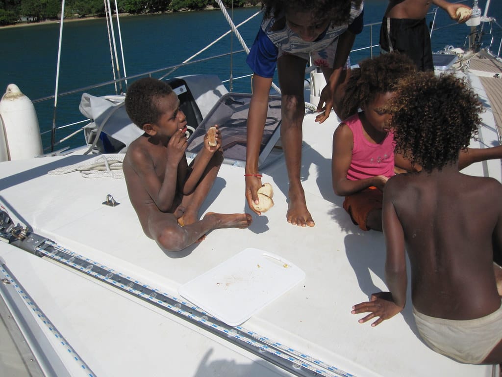 A bunch of local kids swim out to our boat a few days in a row – Loltong, Pentecost