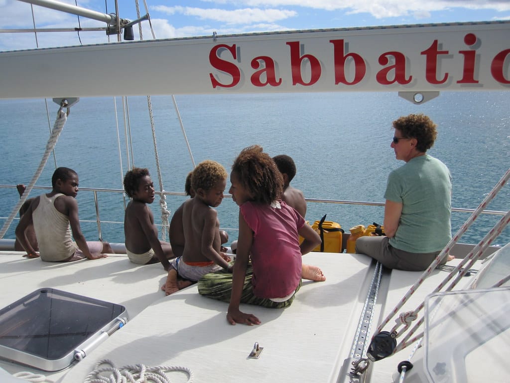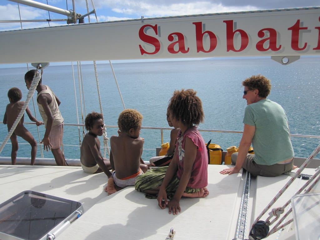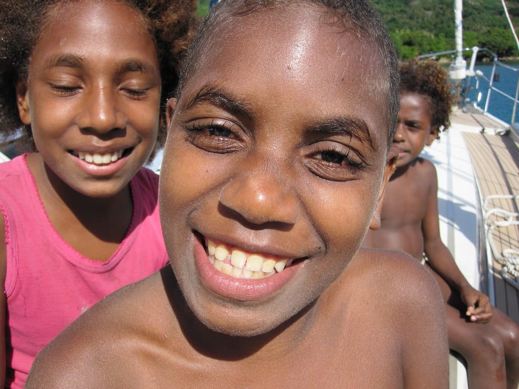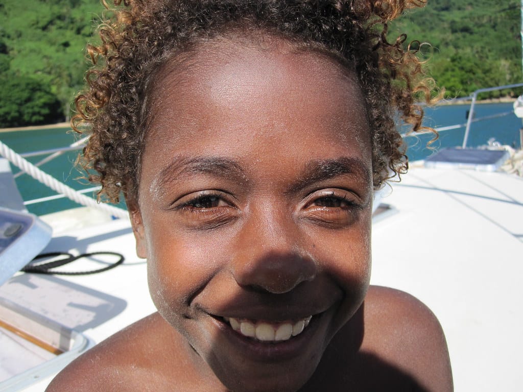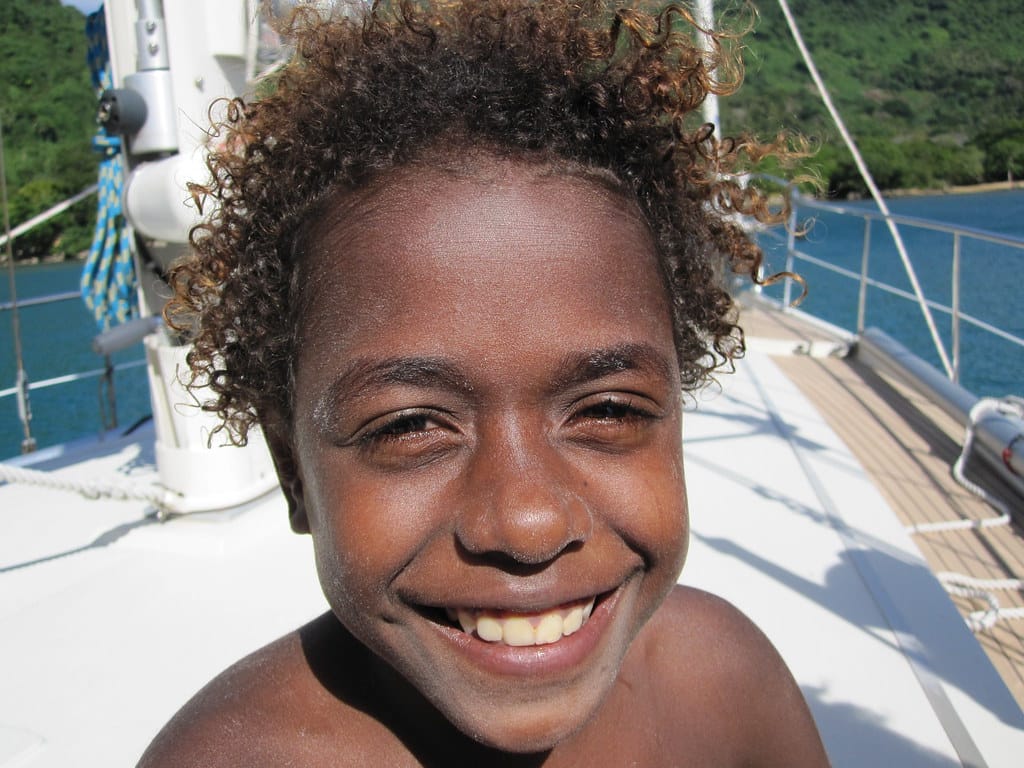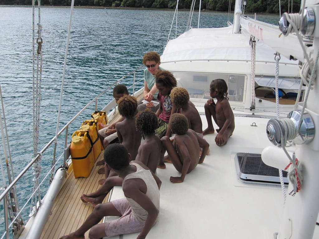A bunch of local kids swim out to our boat a few days in a row – Loltong, Pentecost