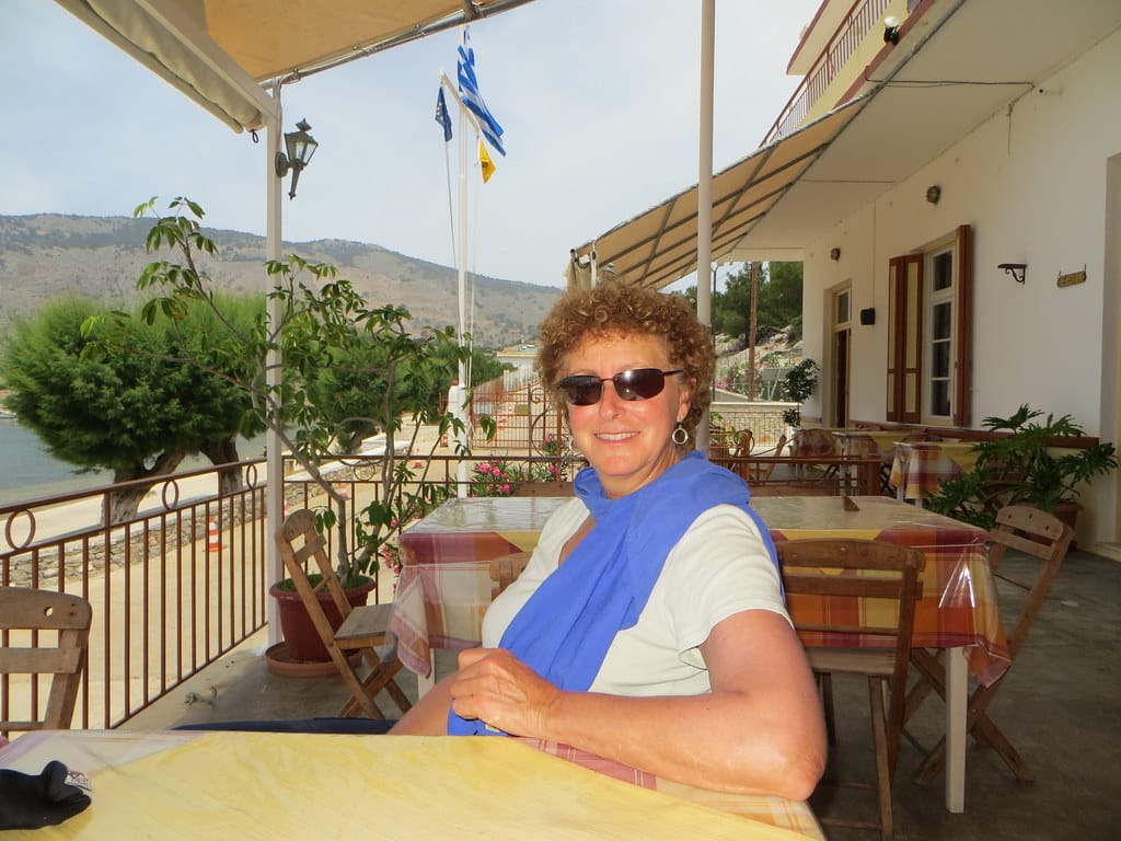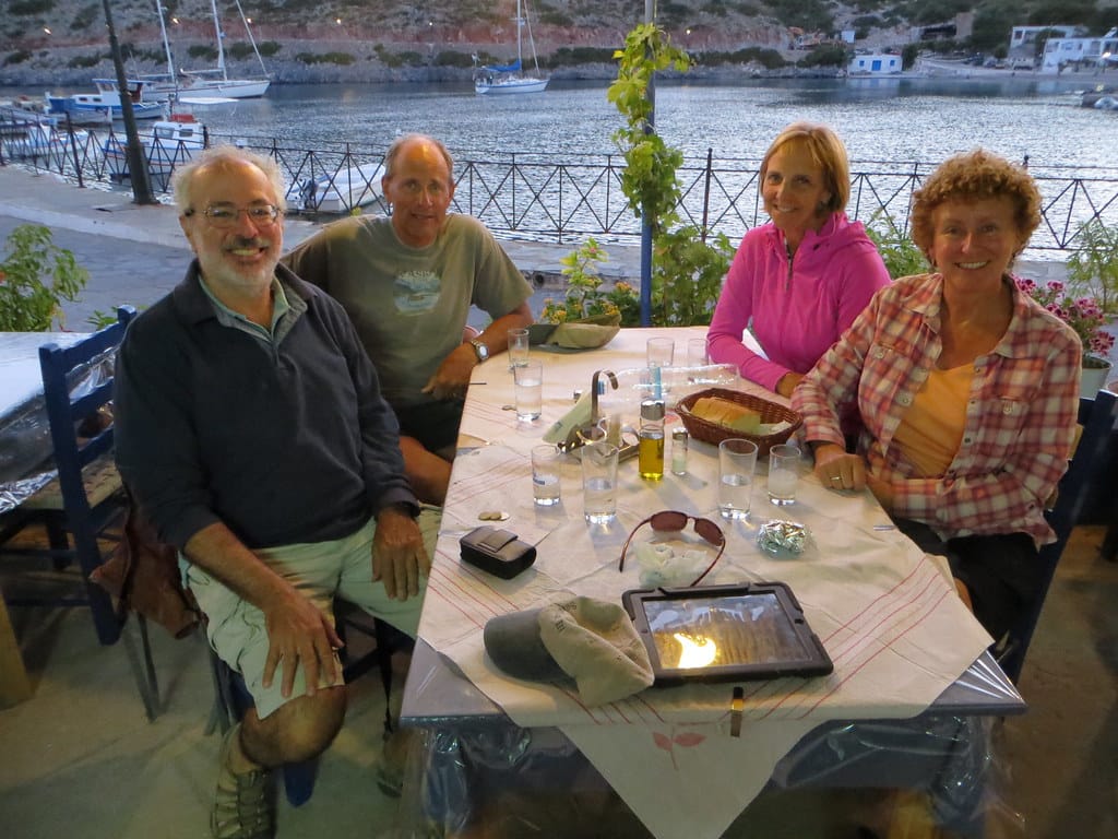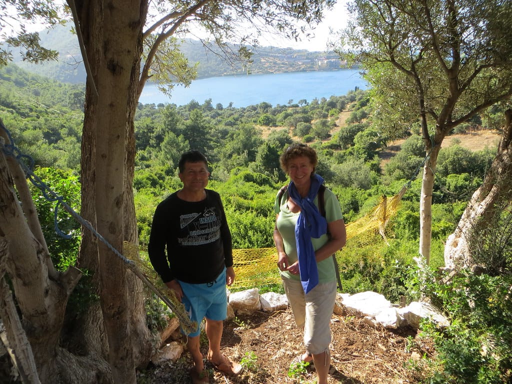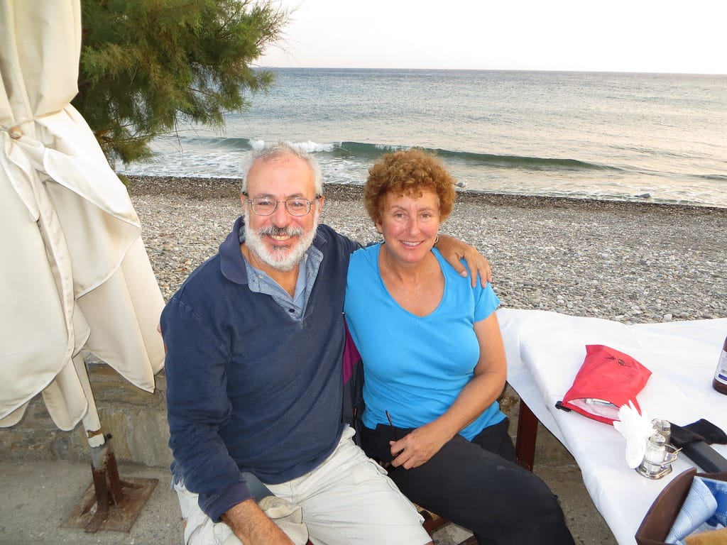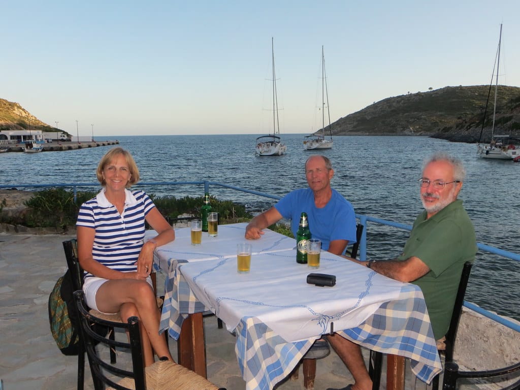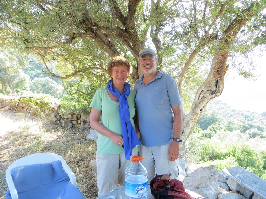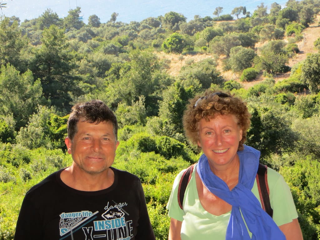 Bill and Janet of Airstream onshore at George’s in Agathanisi, Greece