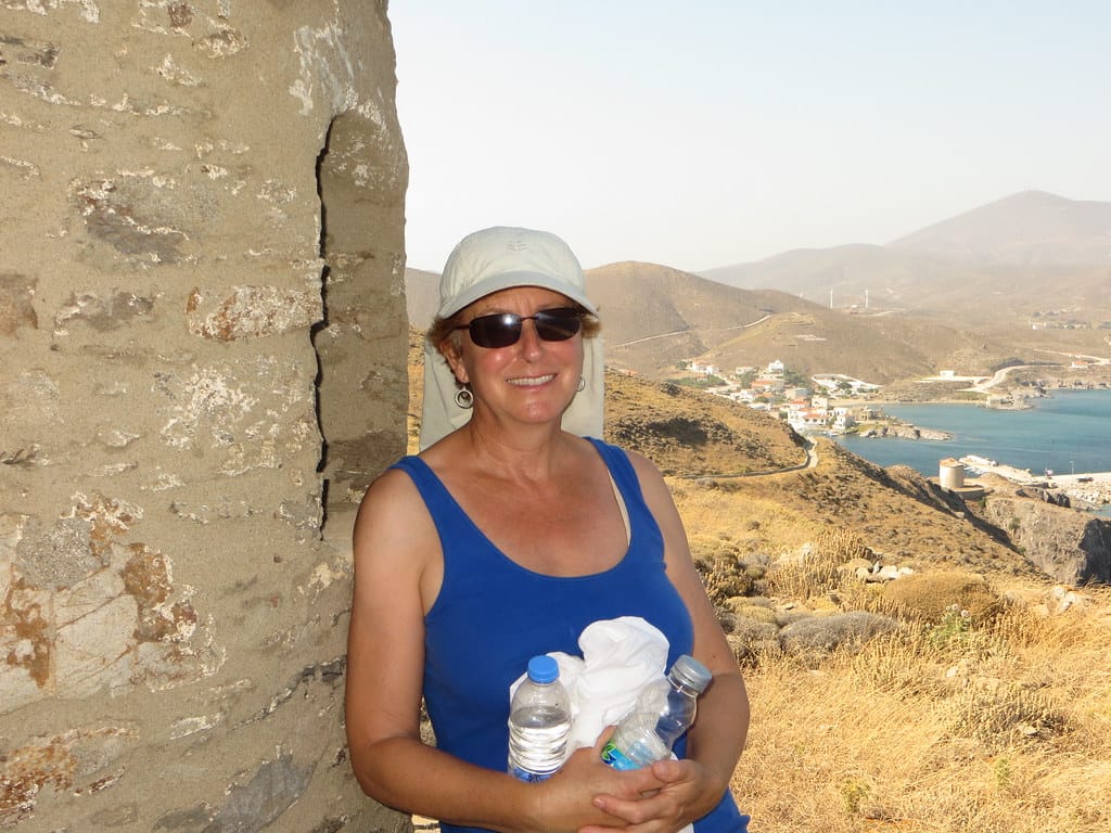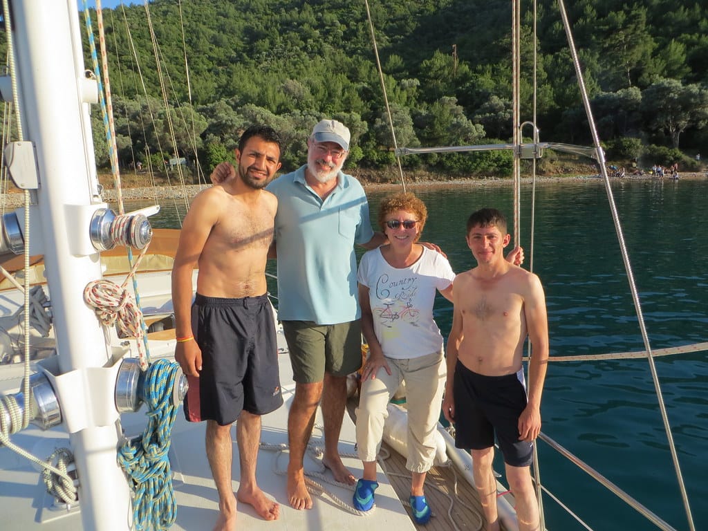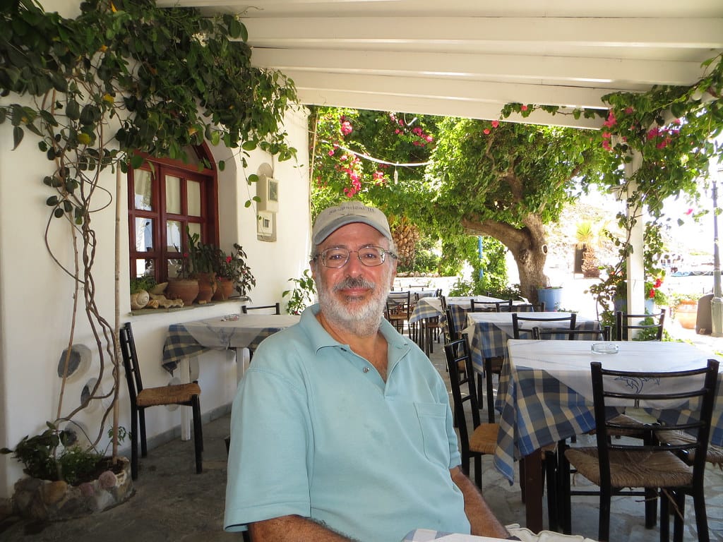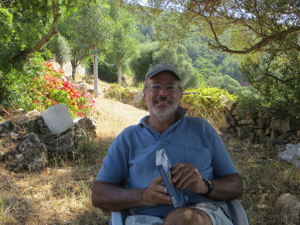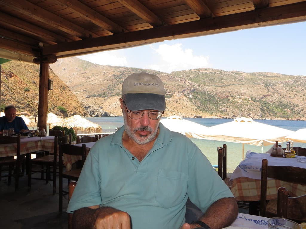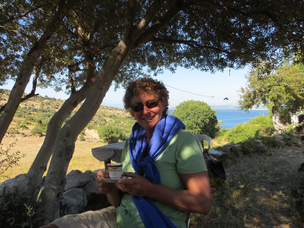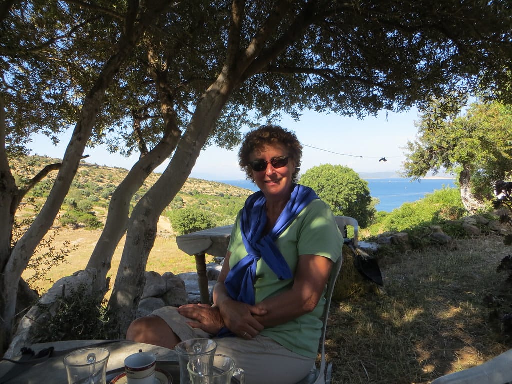 Bill and Janet of Airstream onshore at George’s in Agathanisi, Greece