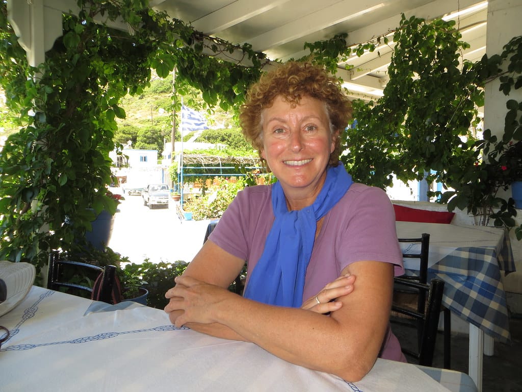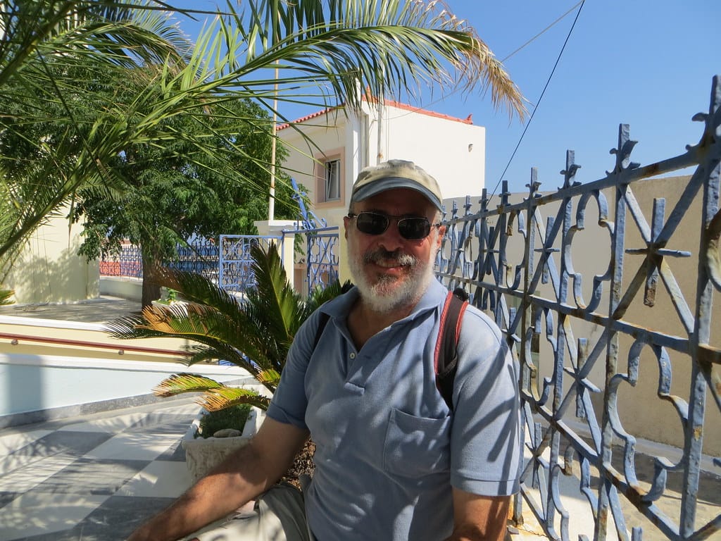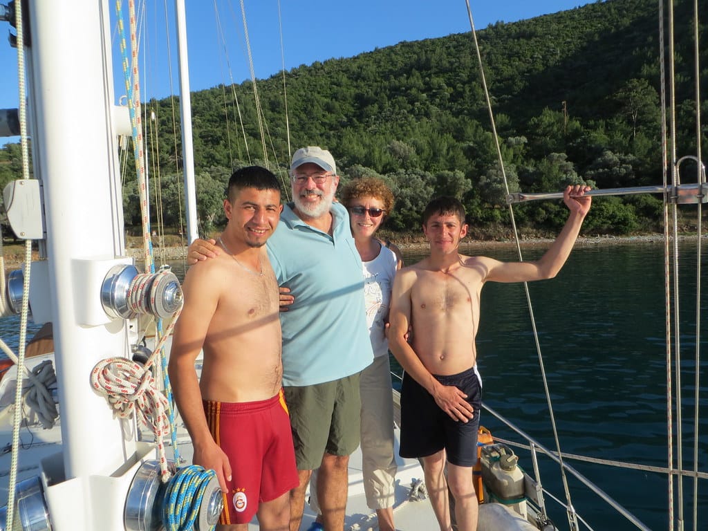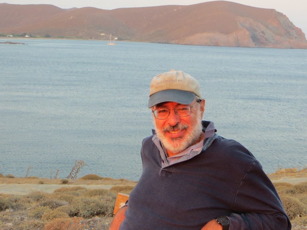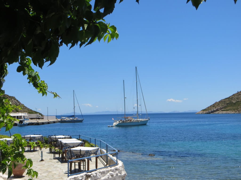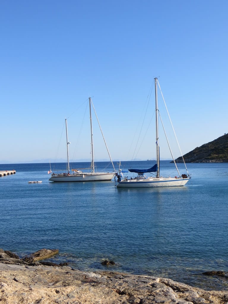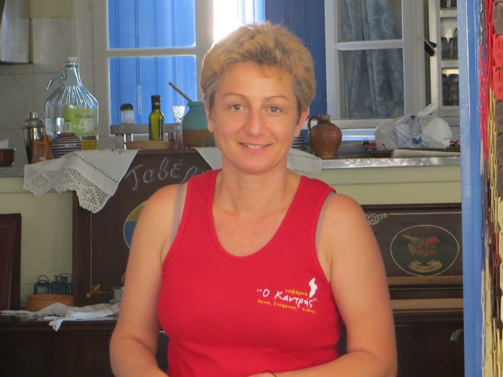 Bill and Janet of Airstream onshore at George’s in Agathanisi, Greece