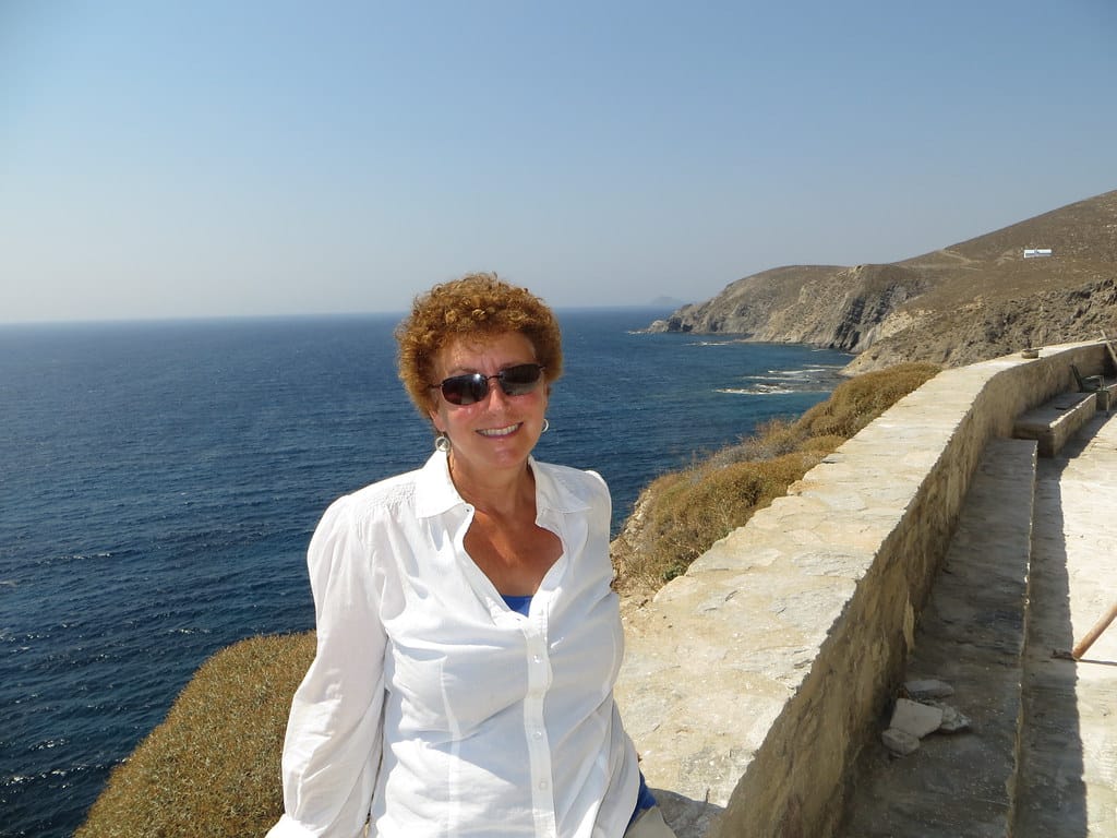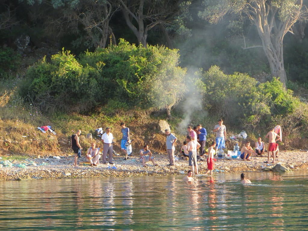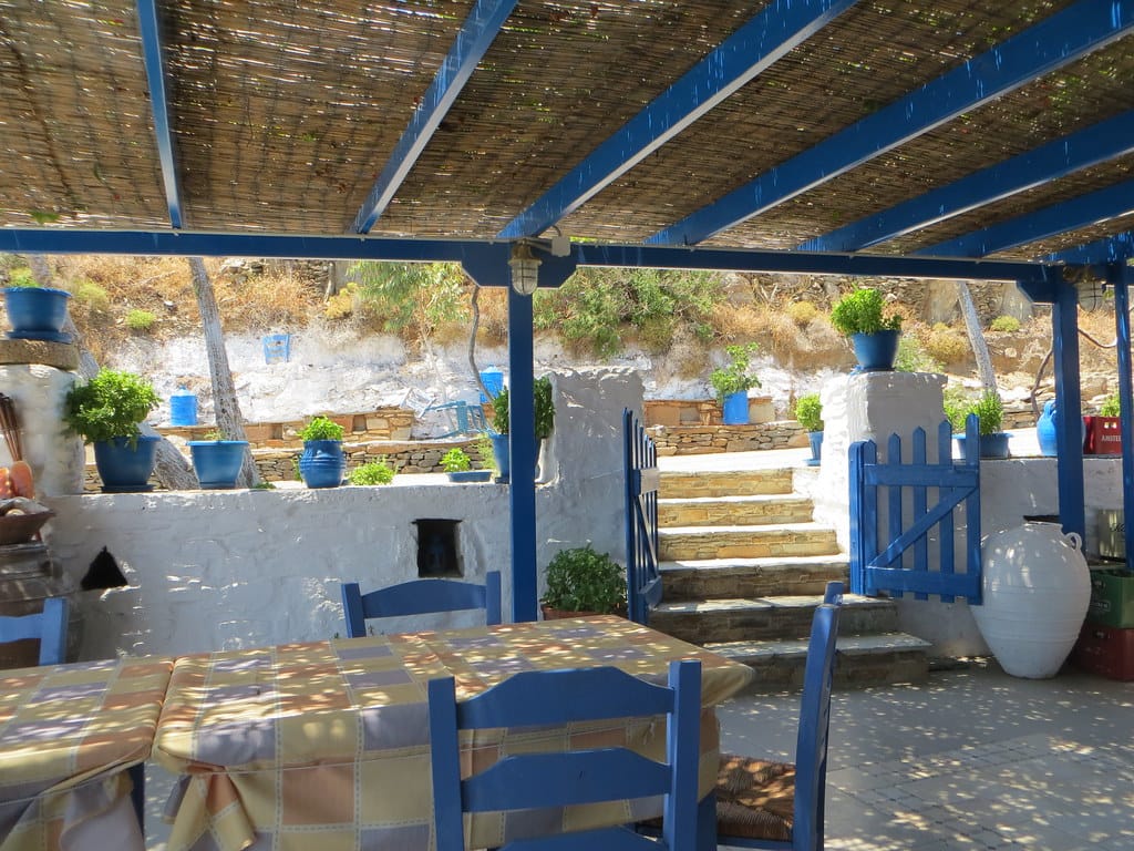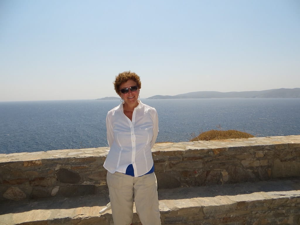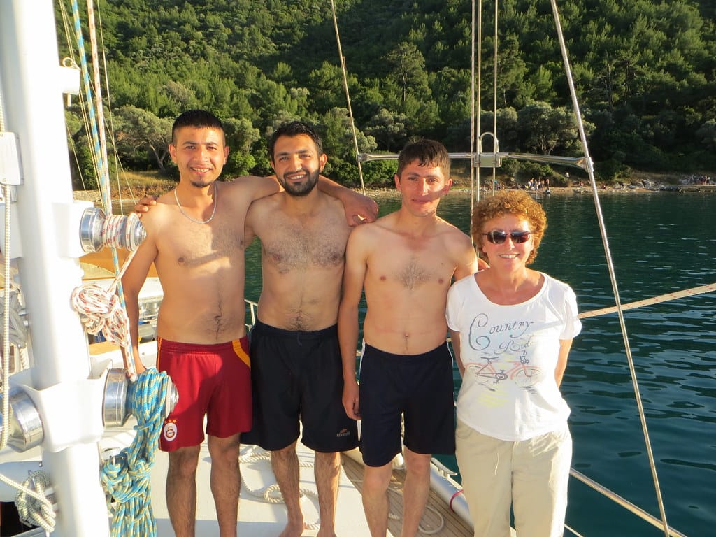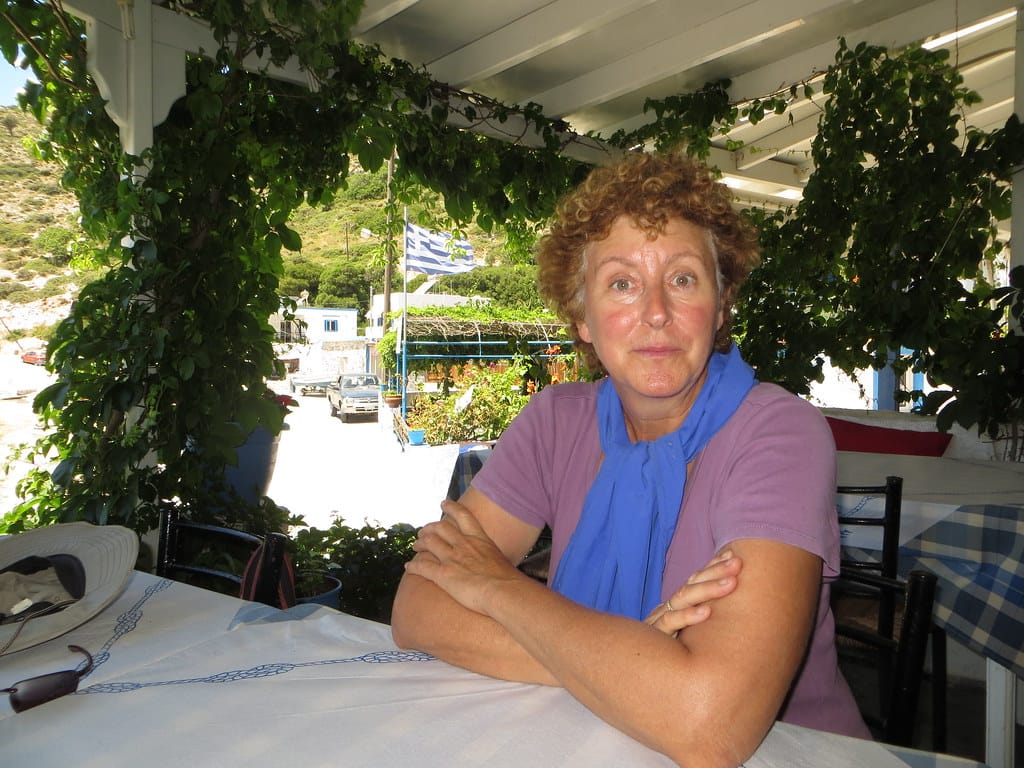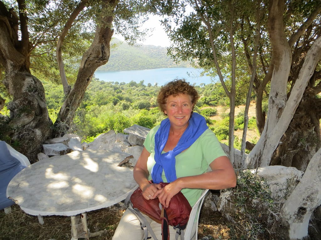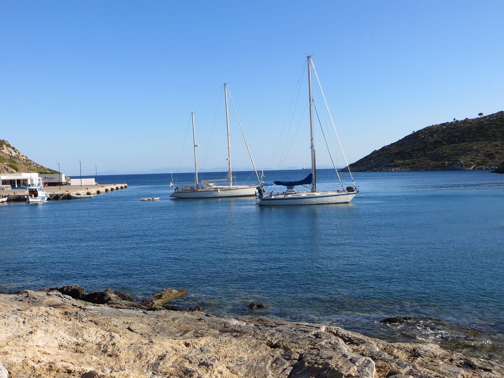 Bill and Janet of Airstream onshore at George’s in Agathanisi, Greece