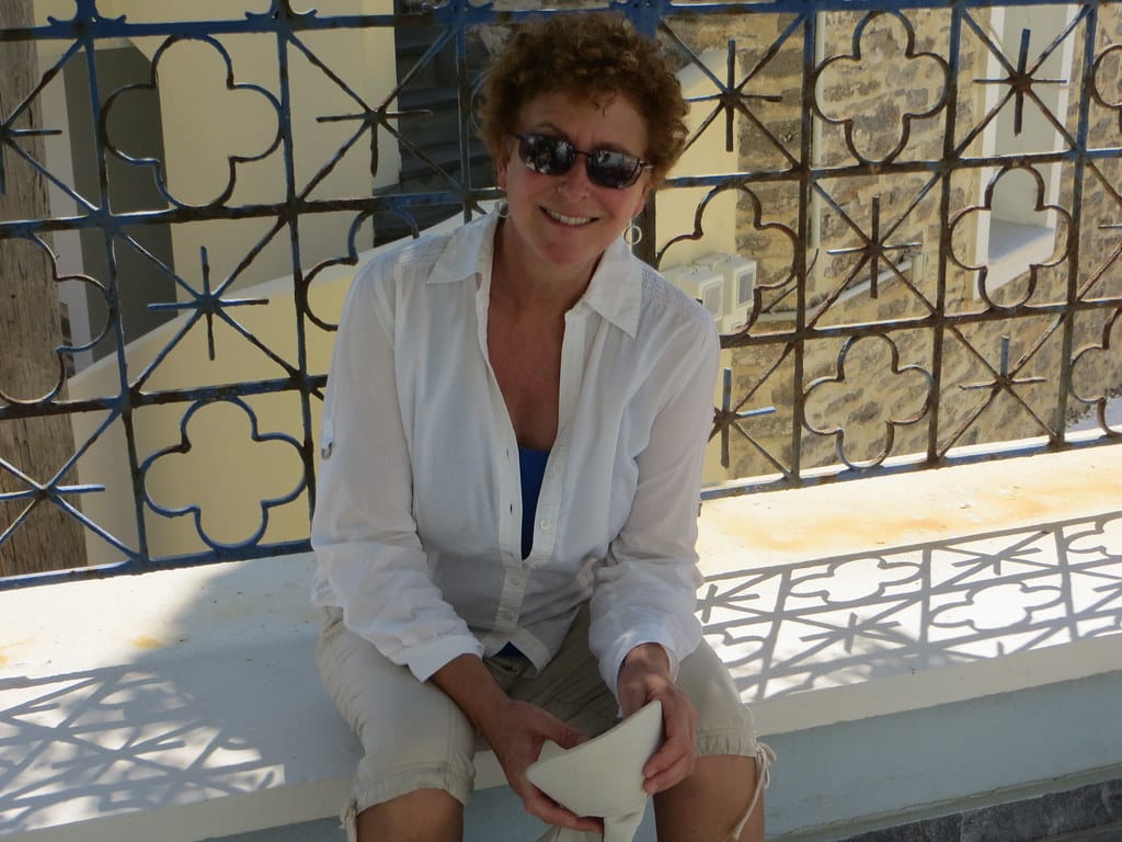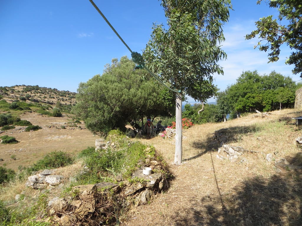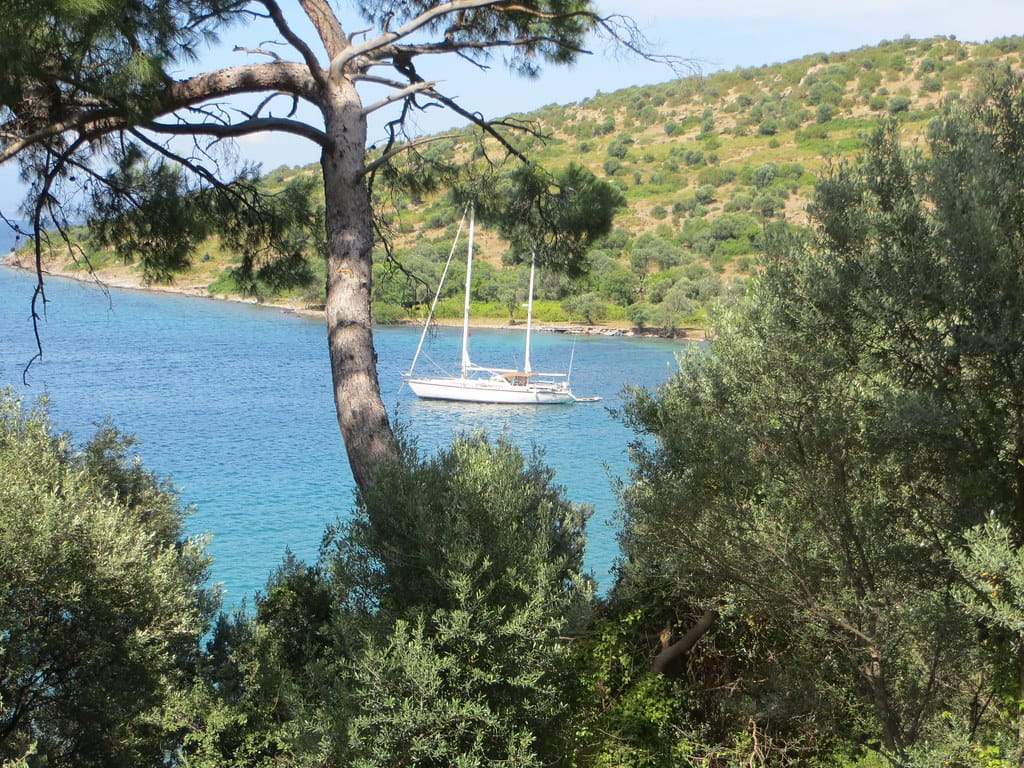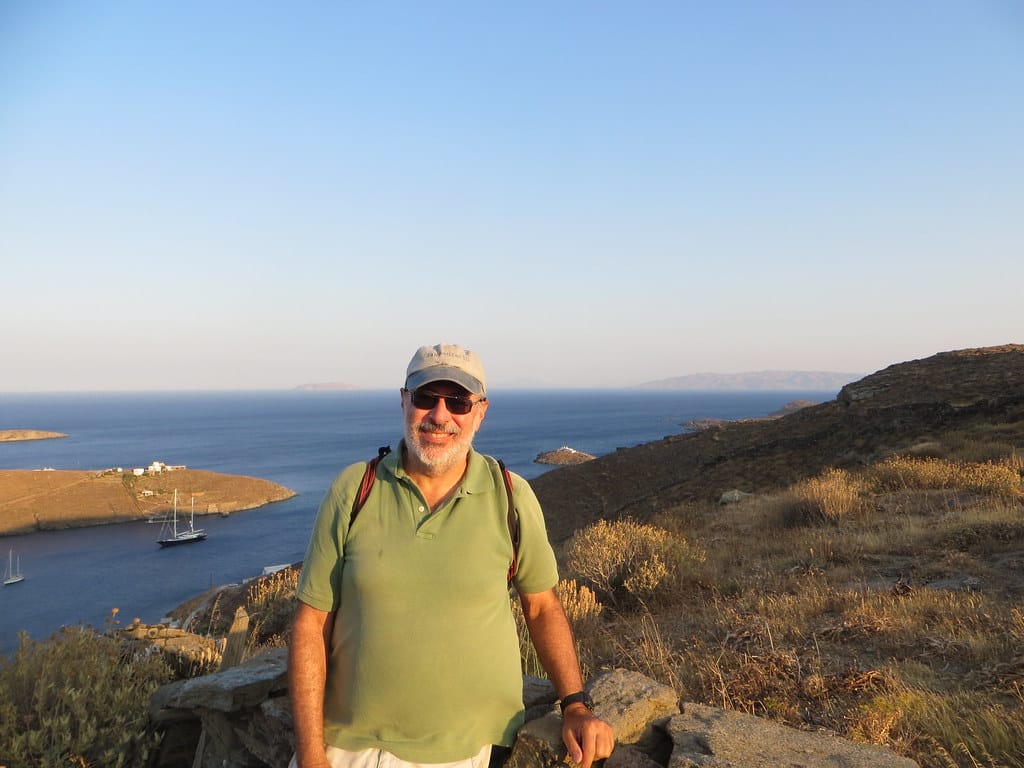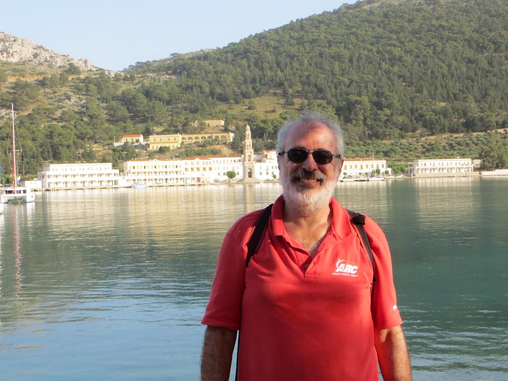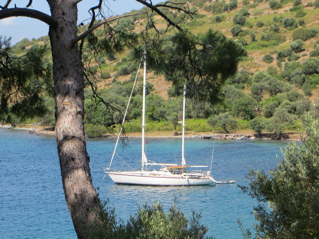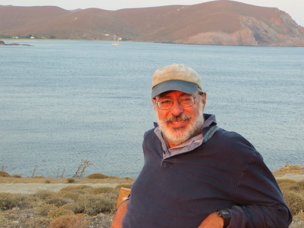 Bill and Janet of Airstream onshore at George’s in Agathanisi, Greece