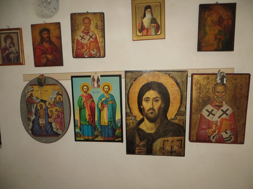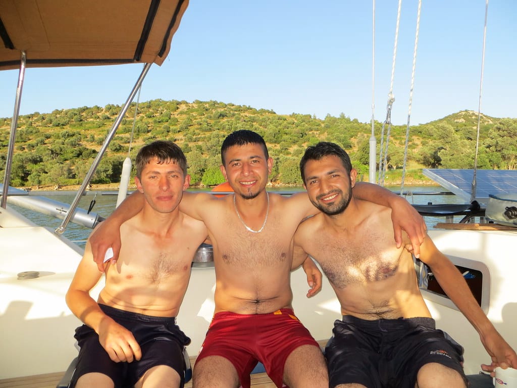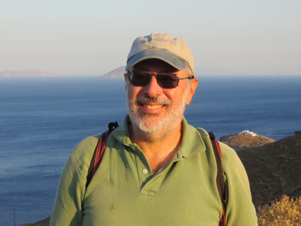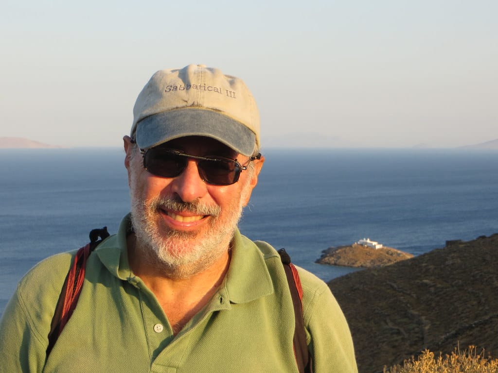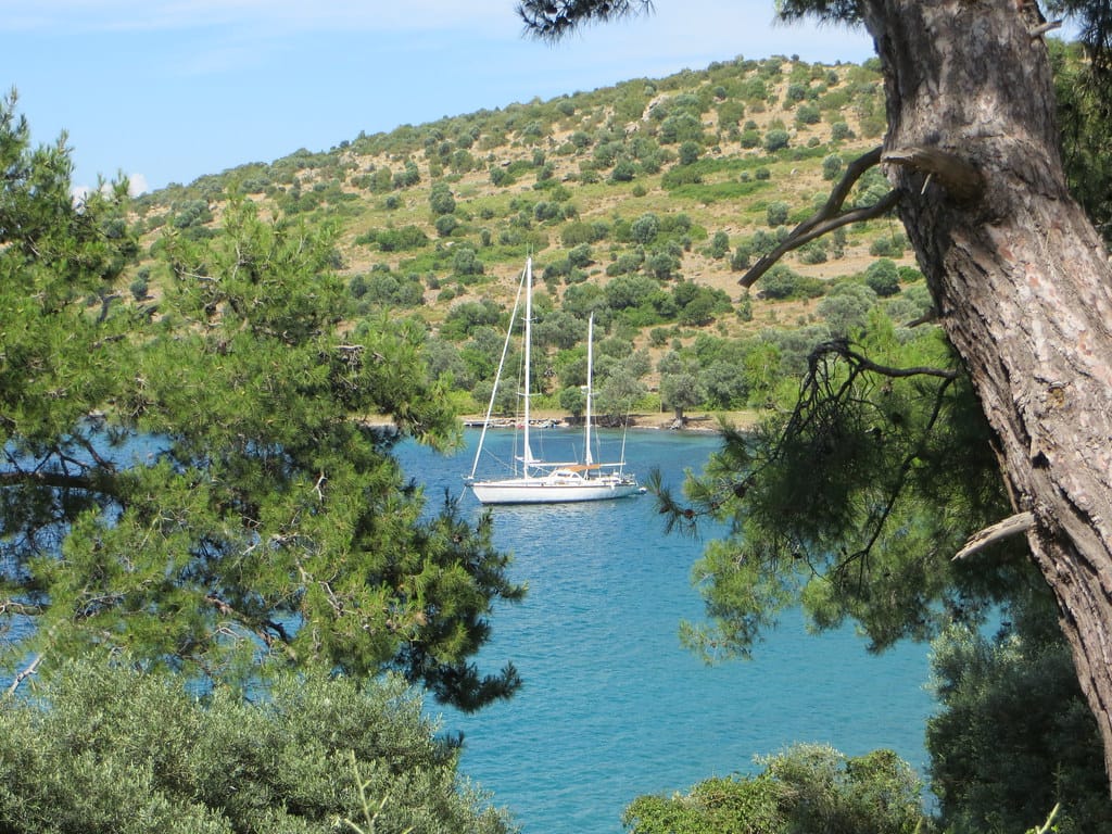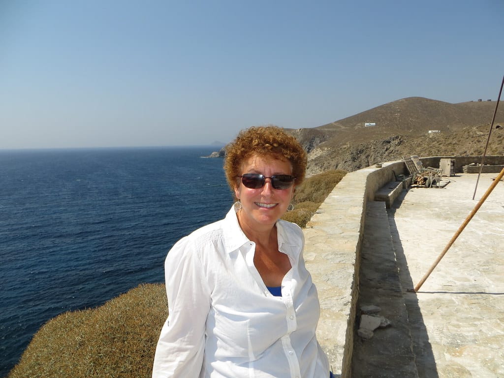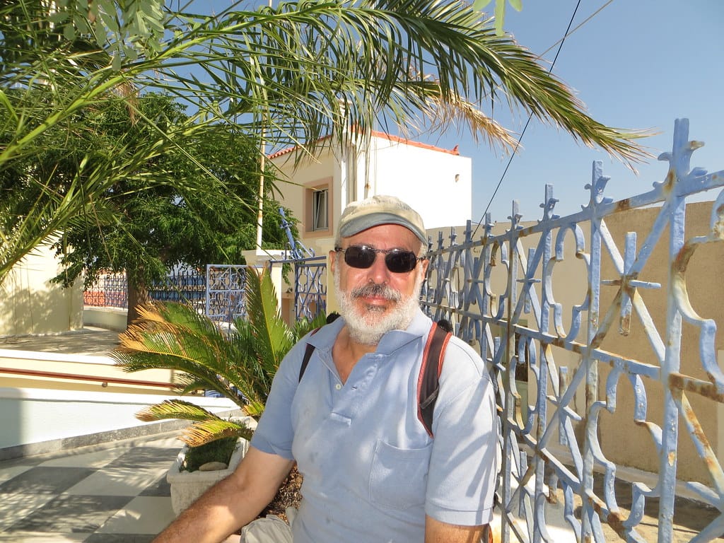 Bill and Janet of Airstream onshore at George’s in Agathanisi, Greece