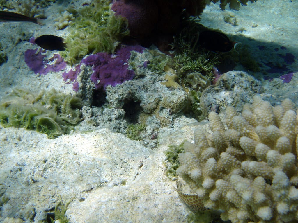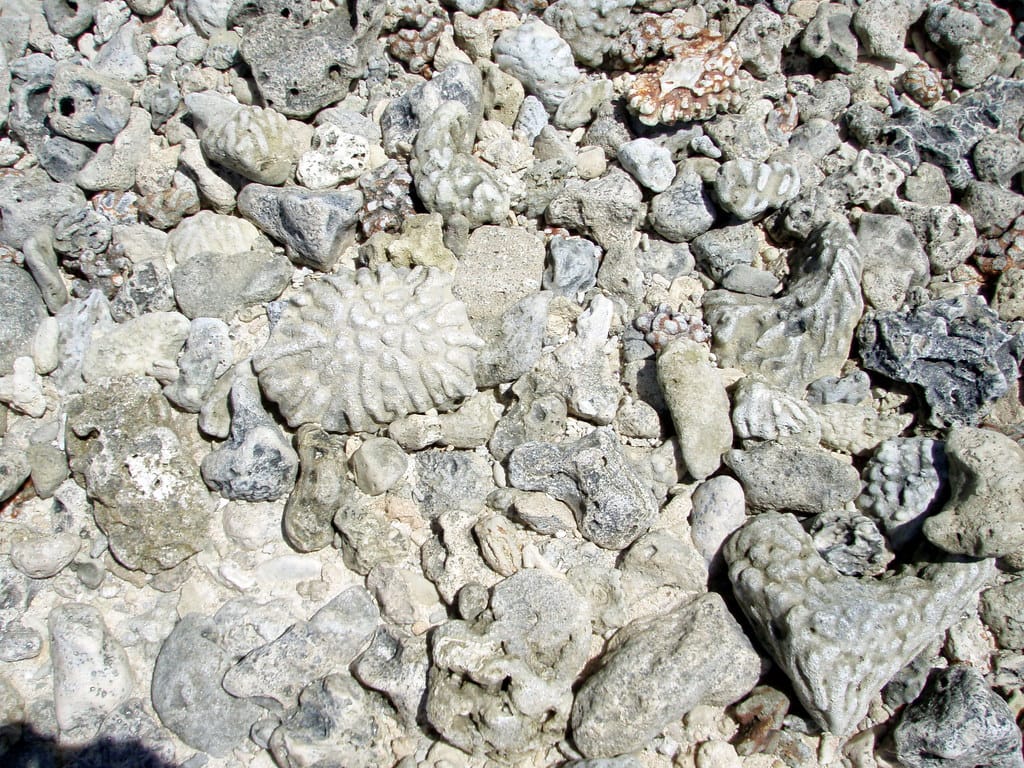 Pieces of dry coral on the exposed reef