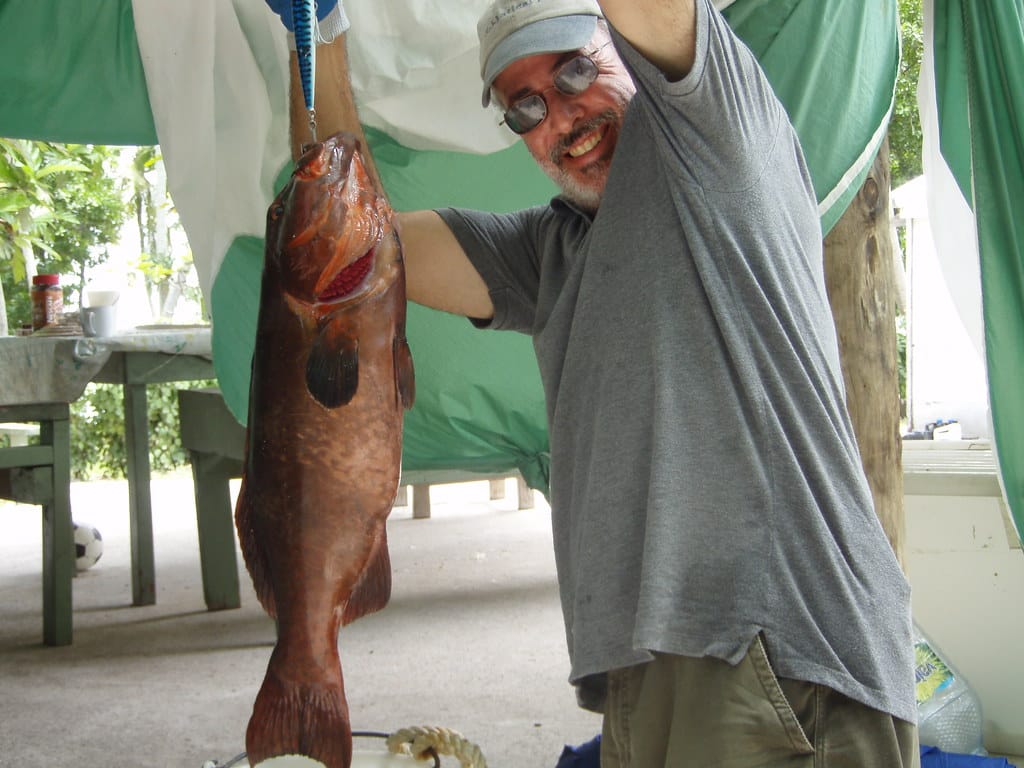 A giant grouper caught while out trolling in our dinghy
