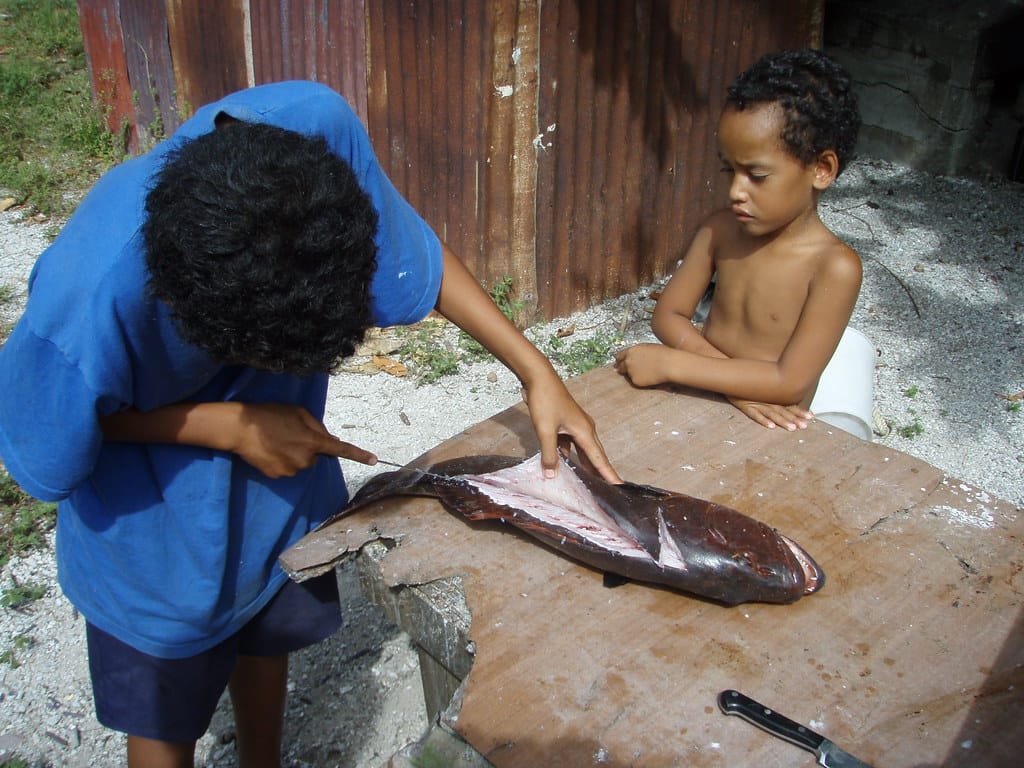 Two of John’s sons show us how to clean a grouper