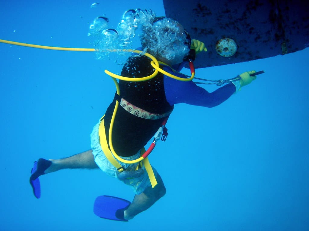 Mark scrubs the bottom
