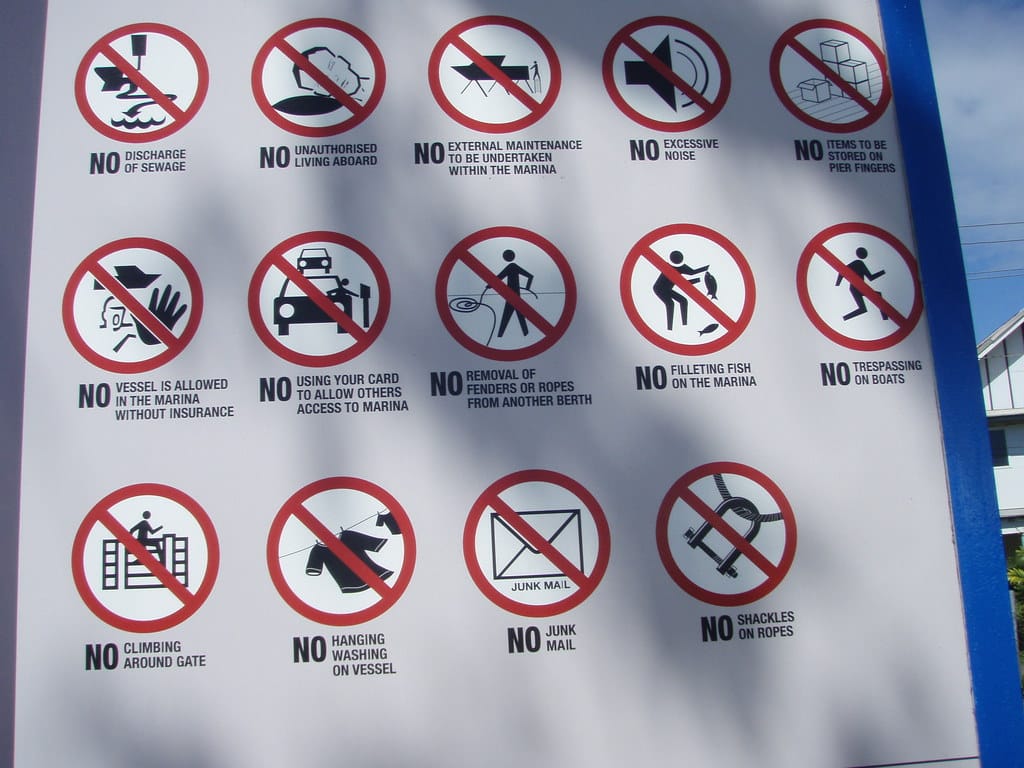 Some of the posted rules at the brand new, over officious marina