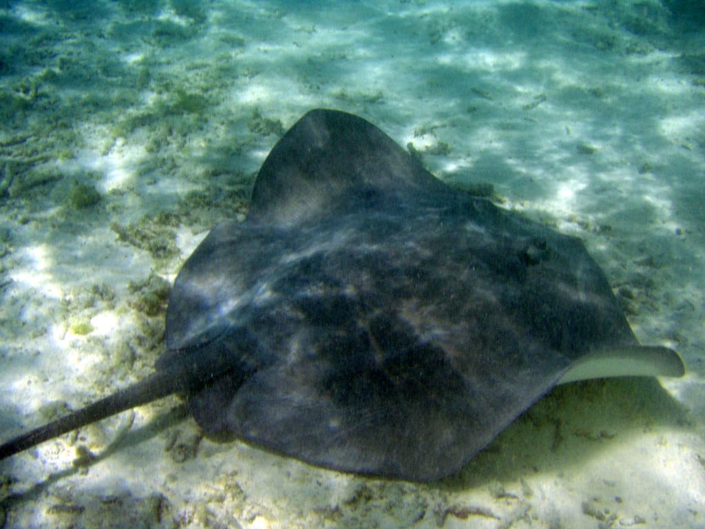 The fish was about 2 feet long, and accompanied the rays wherever they went looking for handouts
