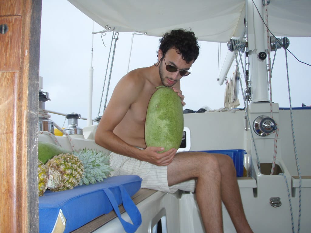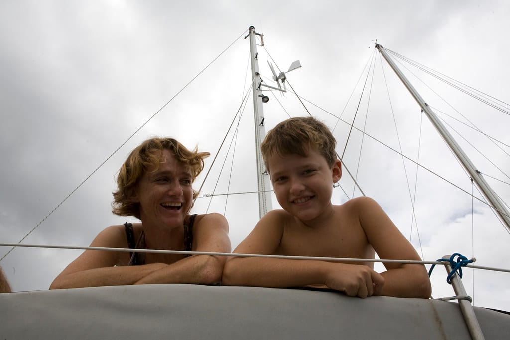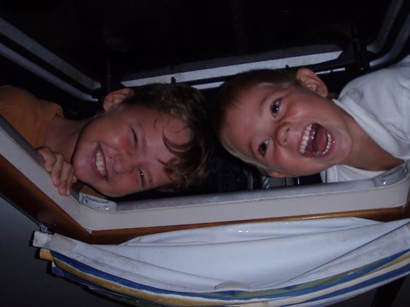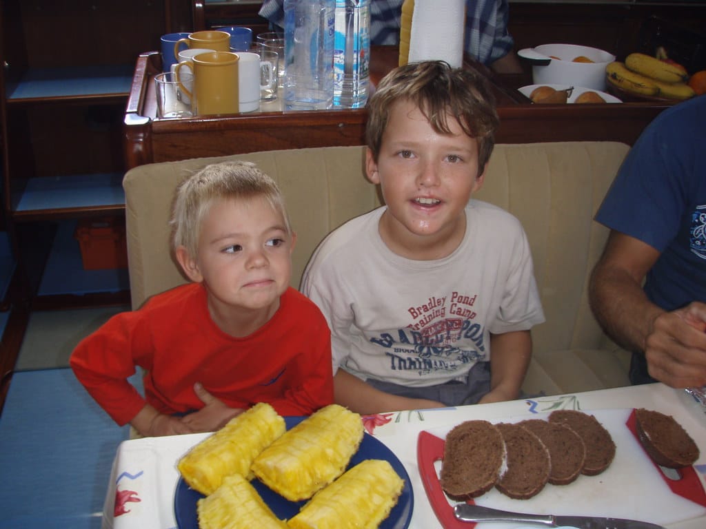 Finn and Yanic look down into the galley from the deck