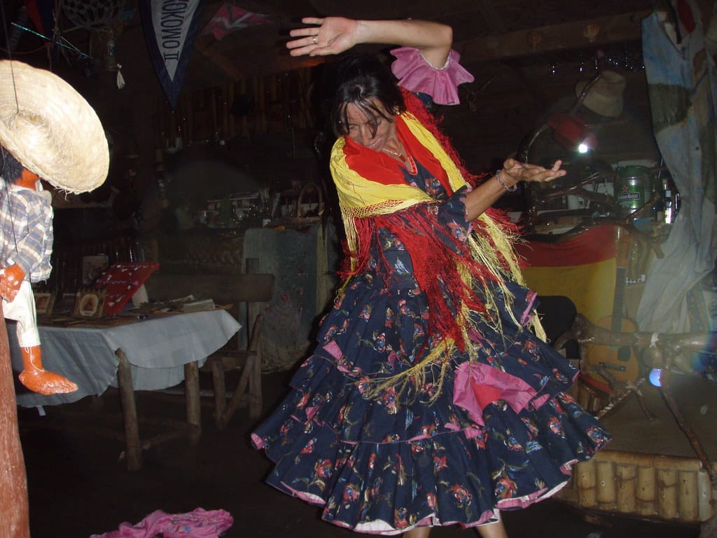 The proprietress cooks, sings and dances