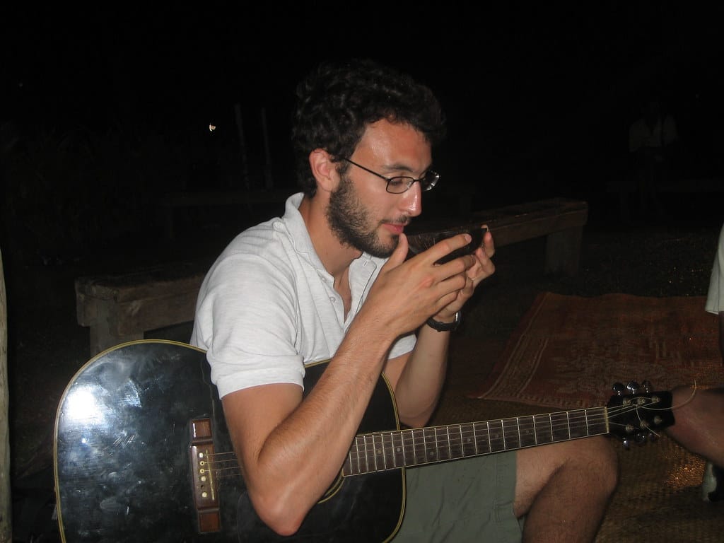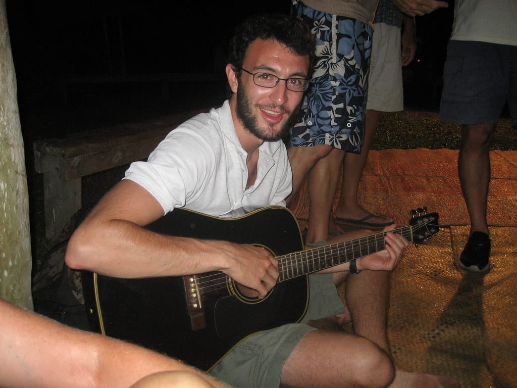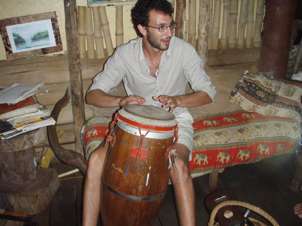 Ben picks up some drums and accompanies the singer
