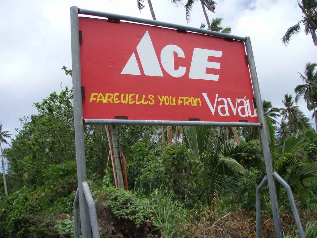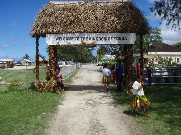 Sign in the town of Nuku’alofa welcoming visitors