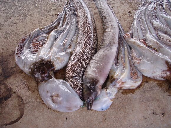 Octopus and eels for sale