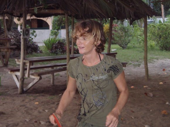 Gesche plays ping-pong with Alex