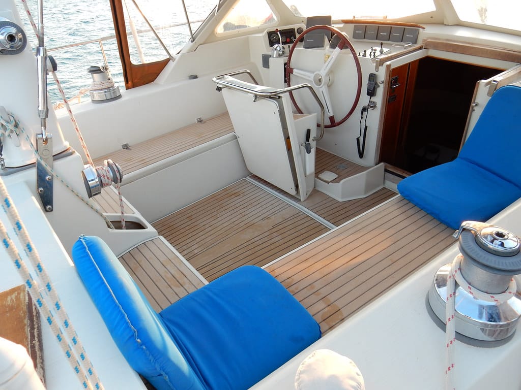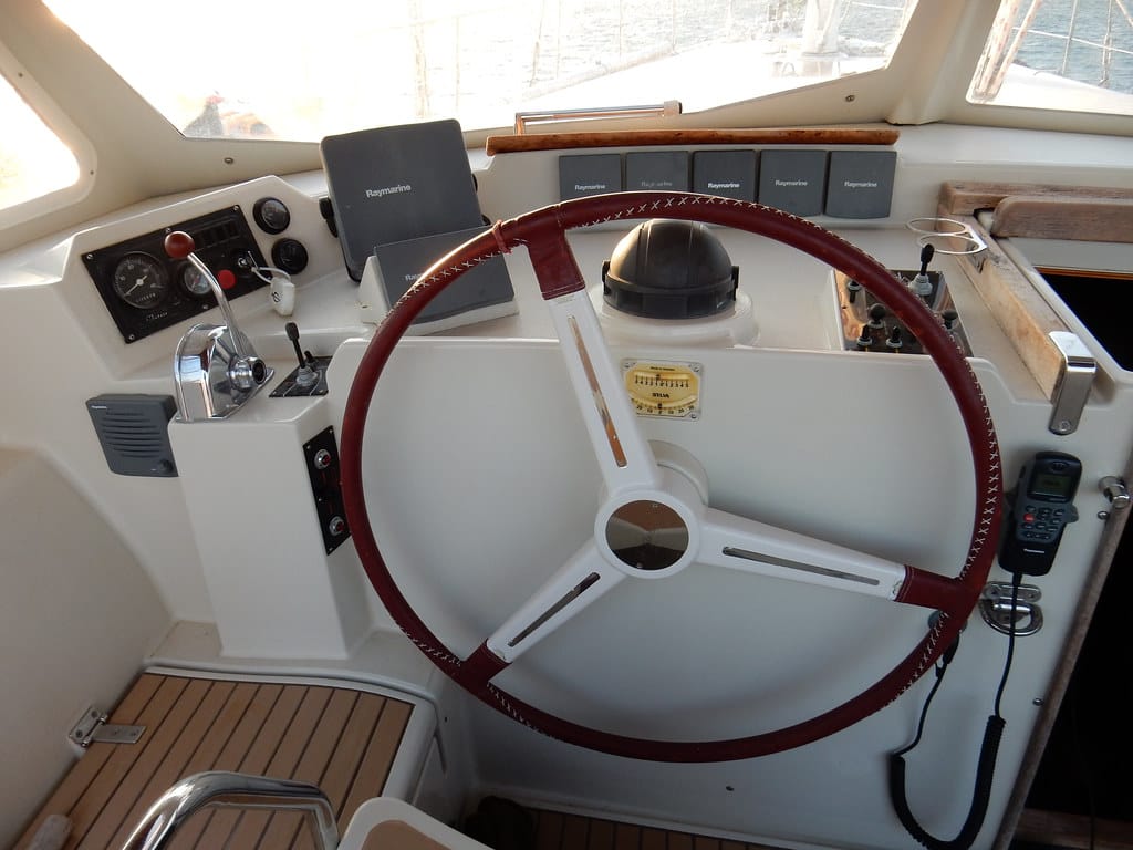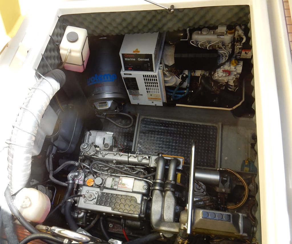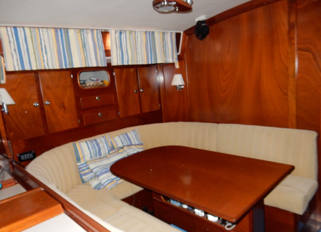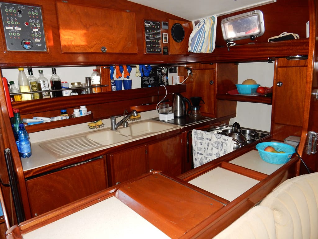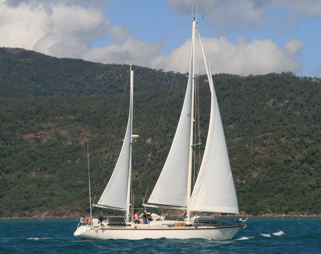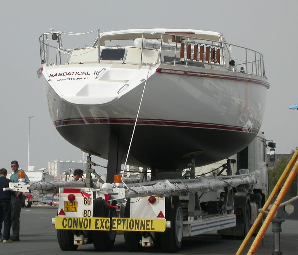 A Look at Sabbatical III: Photos, drawings, and specifications Sabbatical III is a 2004 Amel Super Maramu Millenium ketch built by Chantiers Amel. Hull number 419, she was launched in October 2003 in La Rochelle, France. We are the original owners. Click here for detailed specifications of the vessel and her equipment. PHOTOS OF SABBATICAL III Click on a photo to make it larger, after which you can see captions and scroll though the other photos. Cruising spinnaker New hull delivered to the marina in La Rochelle, France New hull of Sabbatical III, La Rochelle View of prop and keel Rudder Engine room Saloon Galley Helm station Cockpit Stand-up engine room under cockpit sole Under sail (Queensland, Australia) Downwind poles out and ready Twin head sails (partly reefed) set on poles Twin head sails –> LINE DRAWINGS Blowup of Sabbatical III Line drawing Click here to return to the Sabbatical III home page