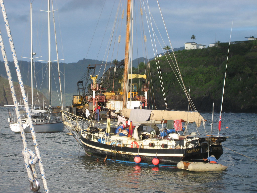 Boats near us in HIva Oa and another Amel – note dredger