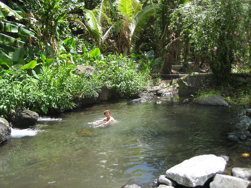 Laura has a swim in the fresh water pool