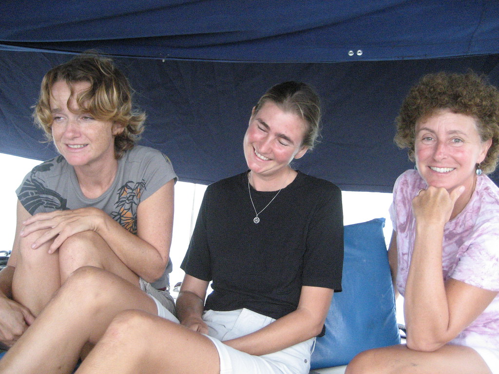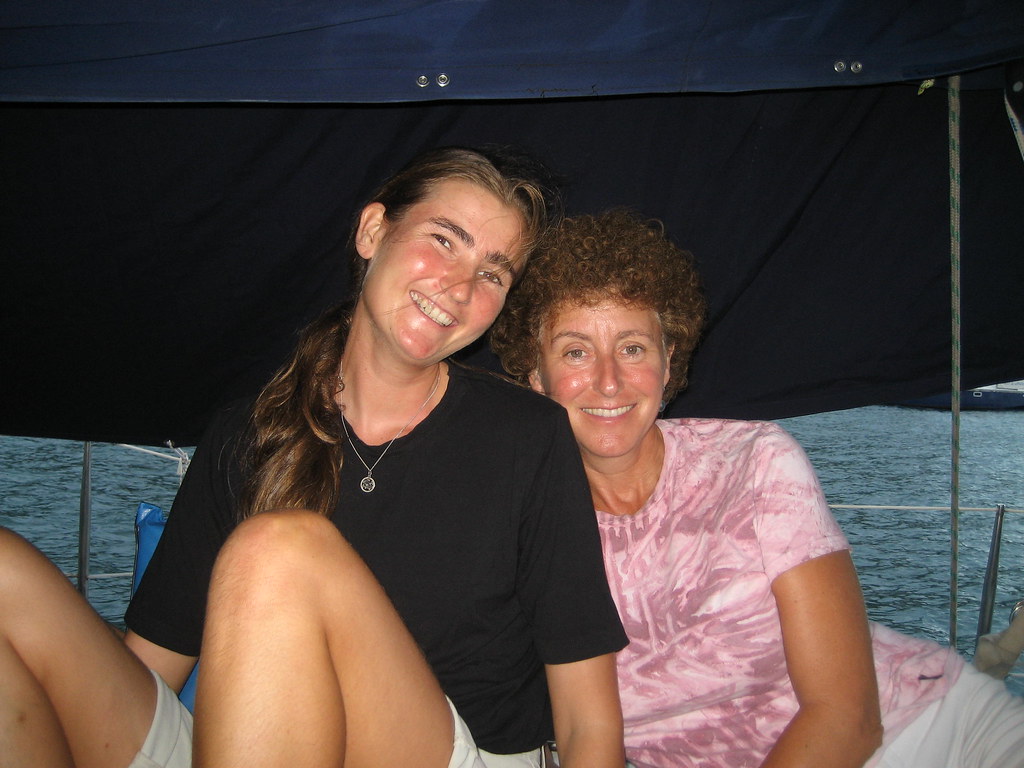 Alexandra and Britta on board Vera for sundowners