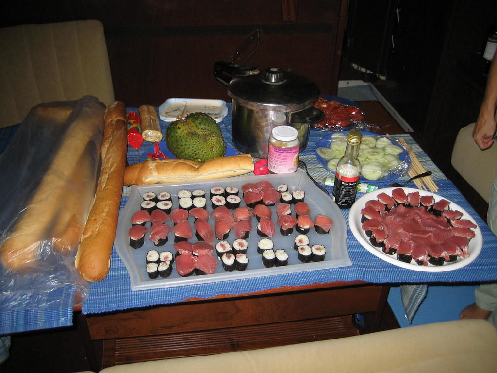 Sushi and baguette on board Sabbatical III – We supplied the tuna and Britta prepared the sushi. It was fantastic.
