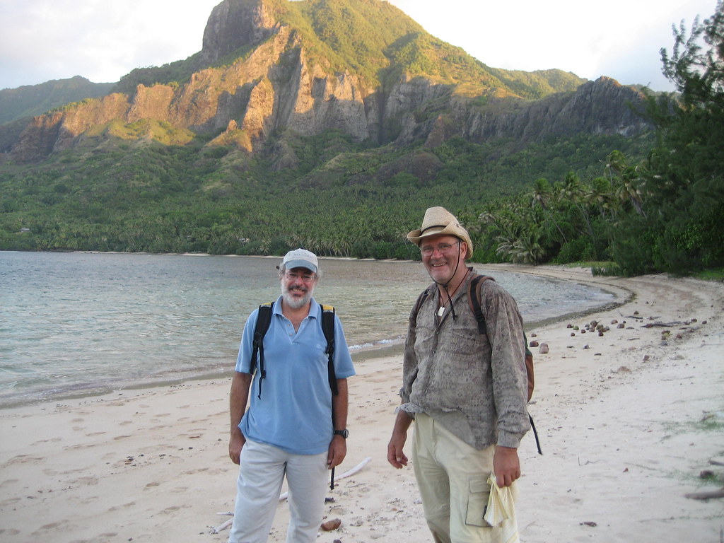 On beach in Anaho with Jean Francois