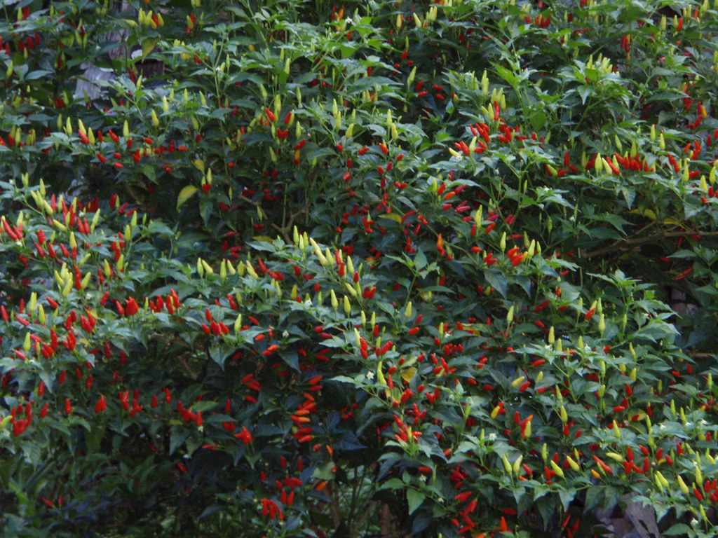 Hot pepper plants grow everywhere
