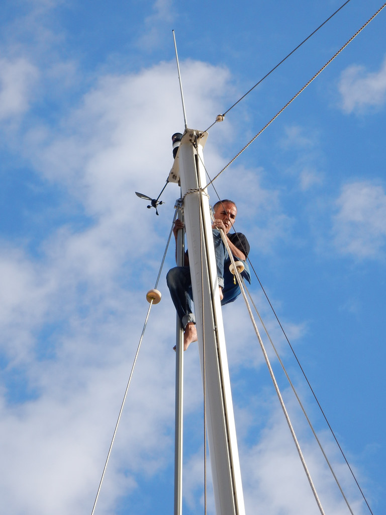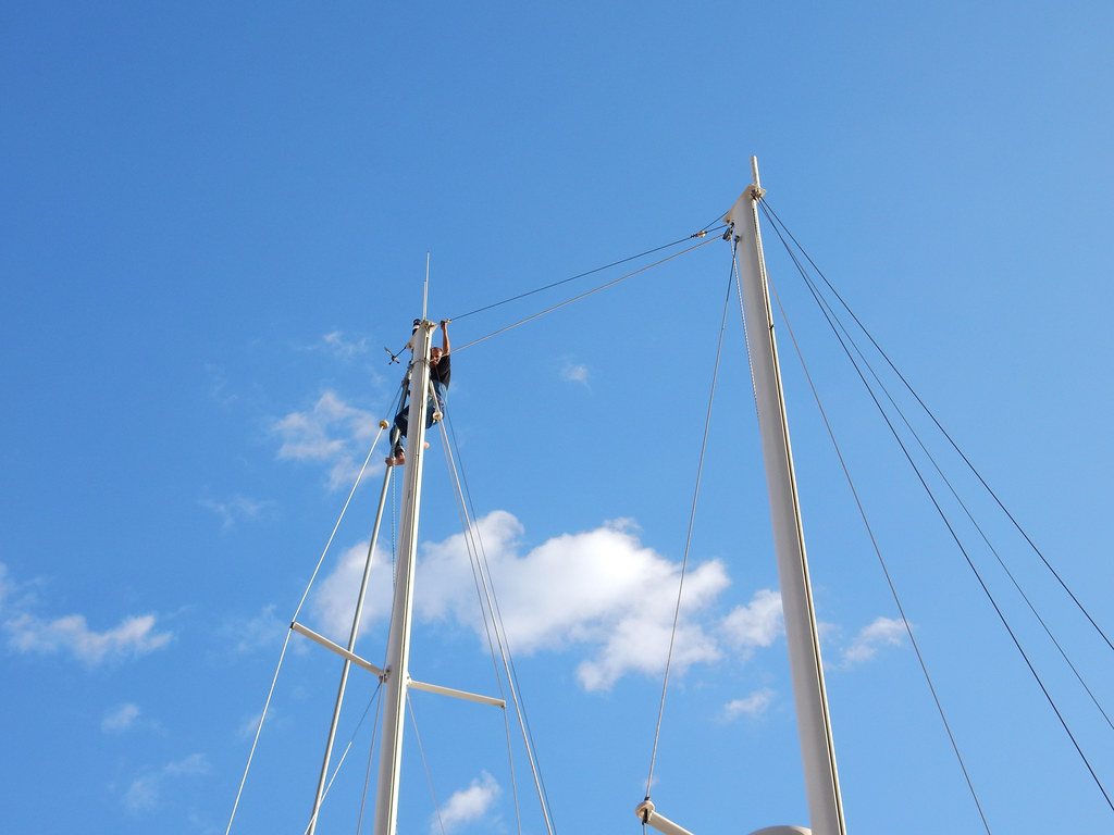 Re-rigging … up the mast